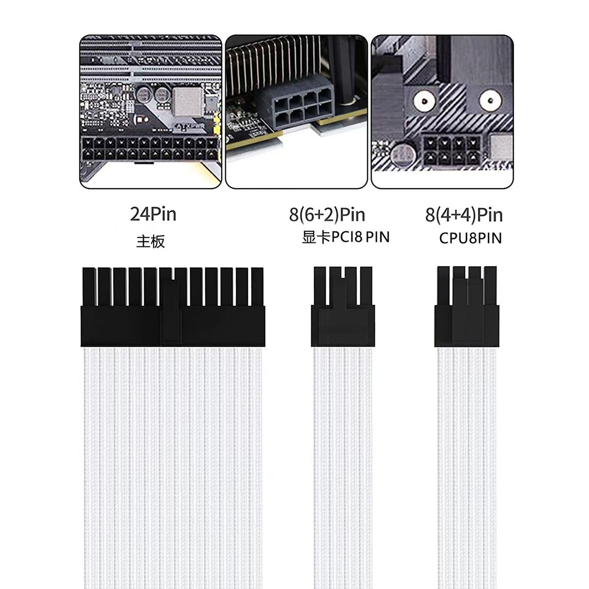 • 흰색 [3팩] 3×8핀 그래픽 카드 케이블