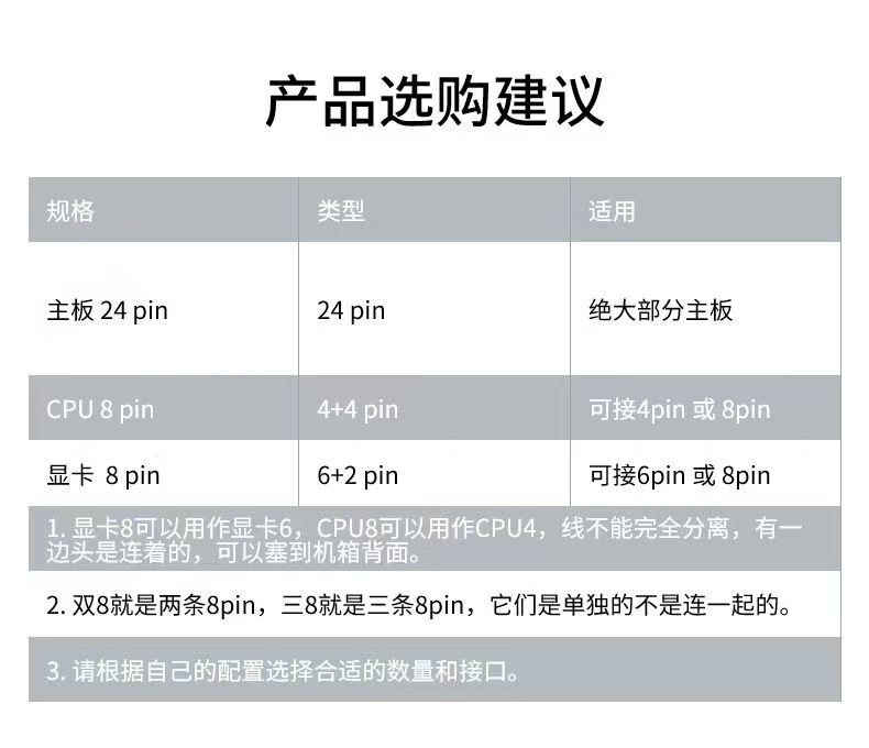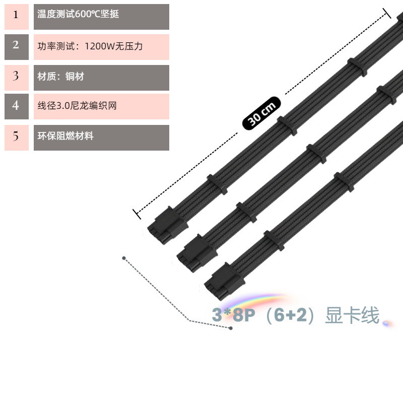 • 검정색 [3팩] 3×8핀 그래픽 카드 케이블