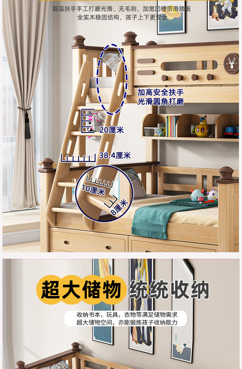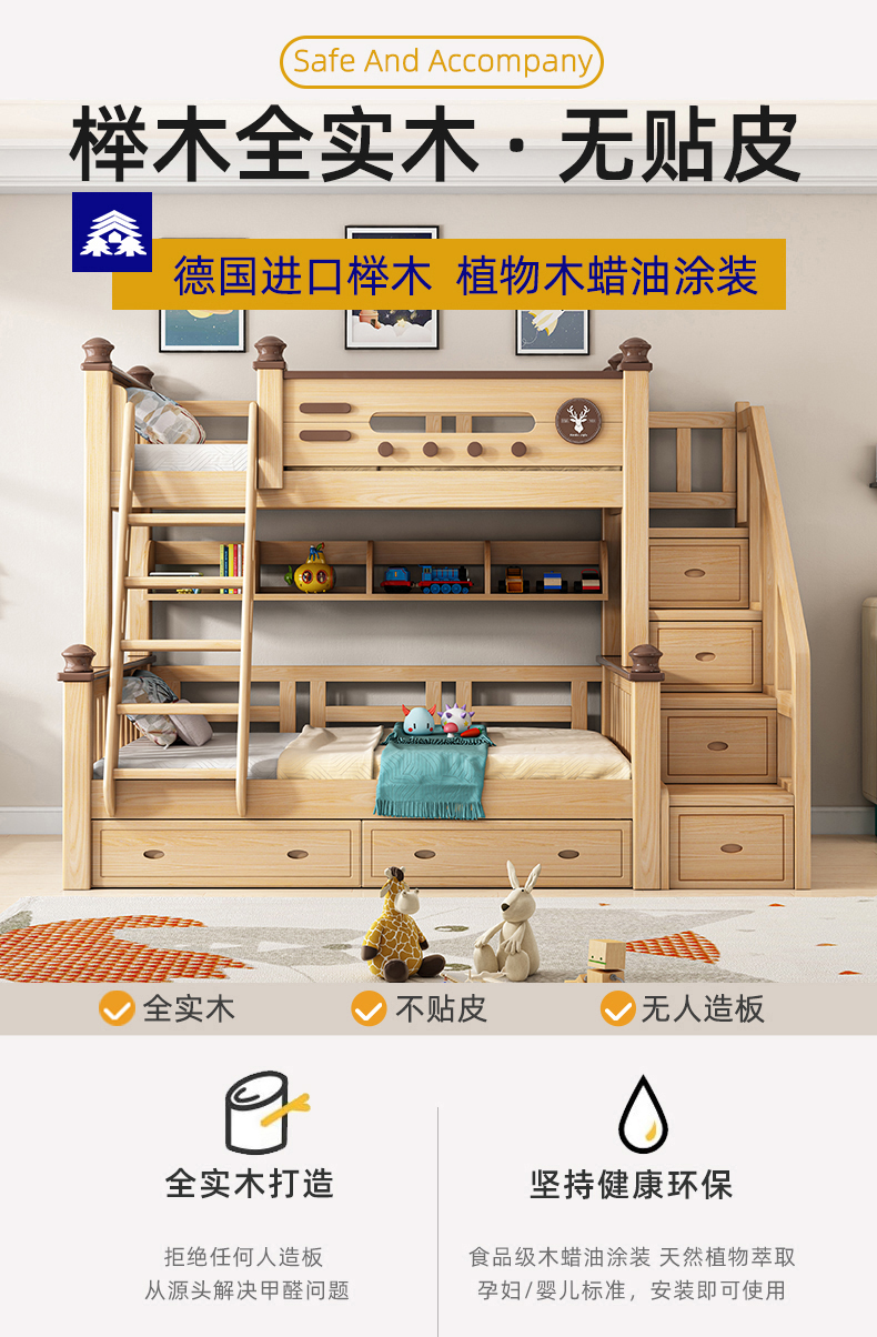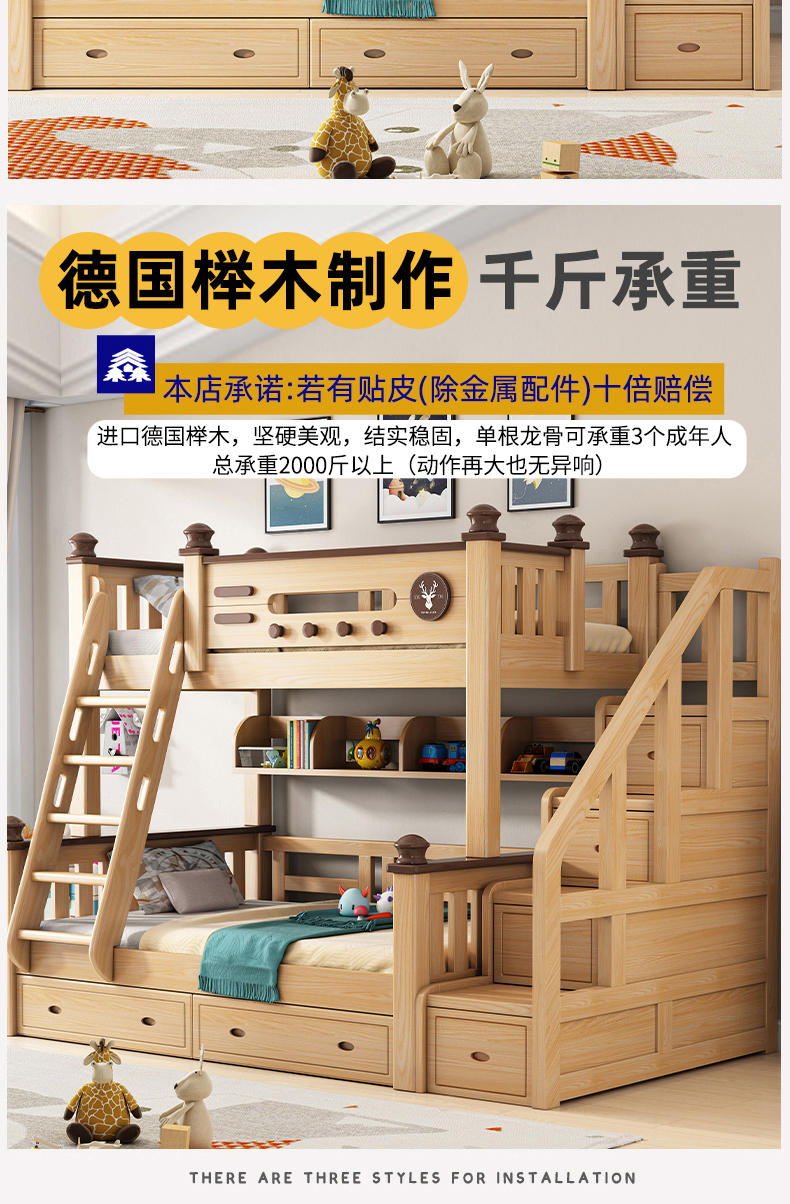 도매 너도밤나무 이층 침대, 모든 단단한 나무 어린이 침대, 높낮이 침대, 작은 아파트 이층 침대, 이층 침대스토어 가기