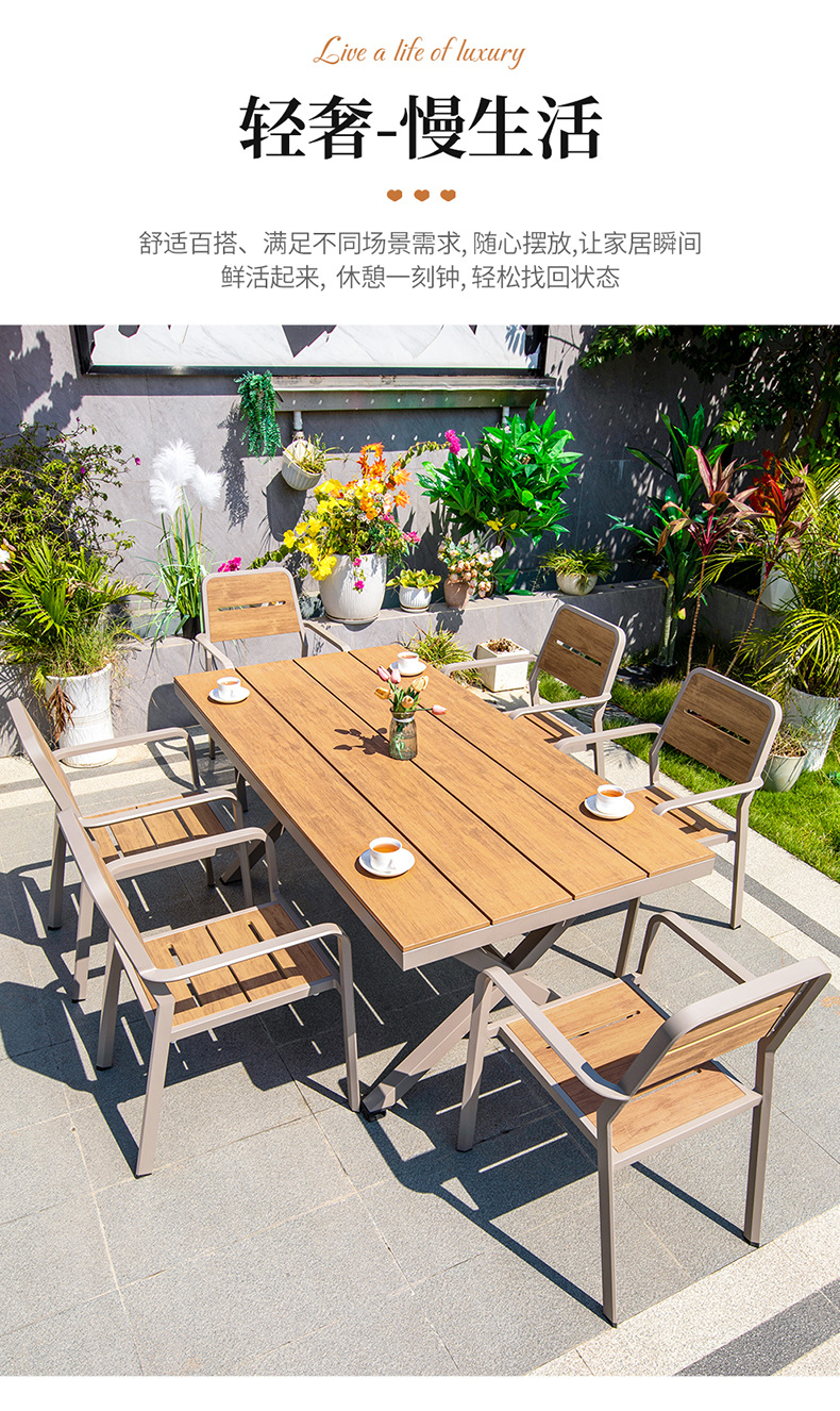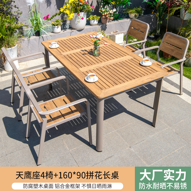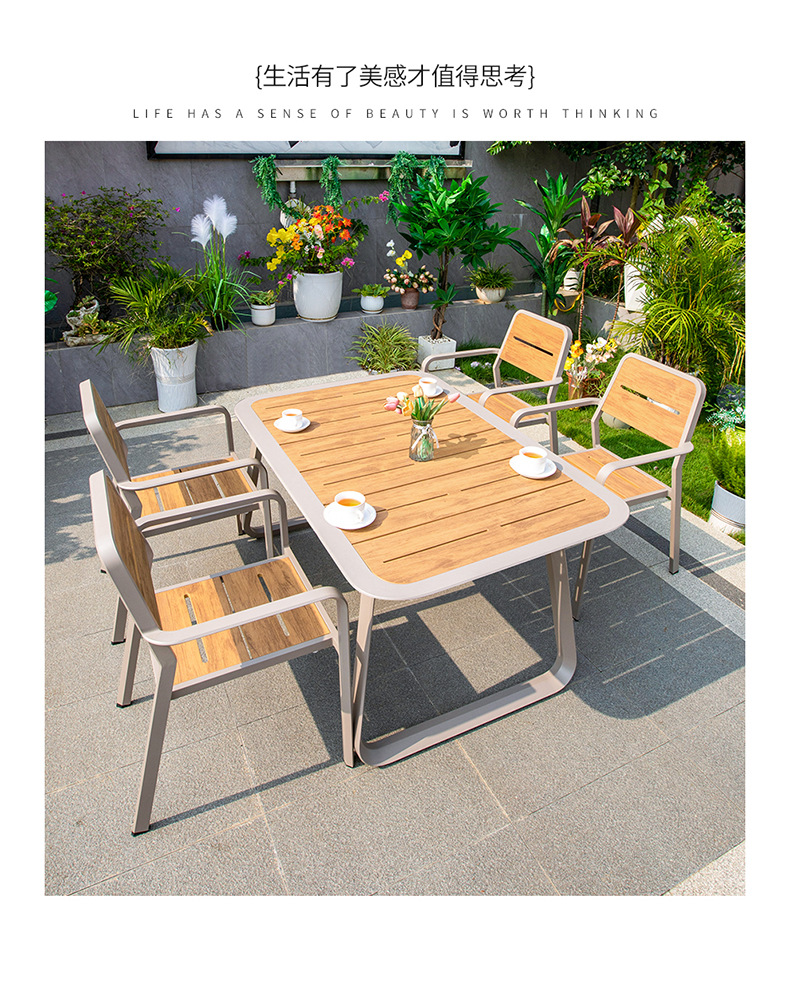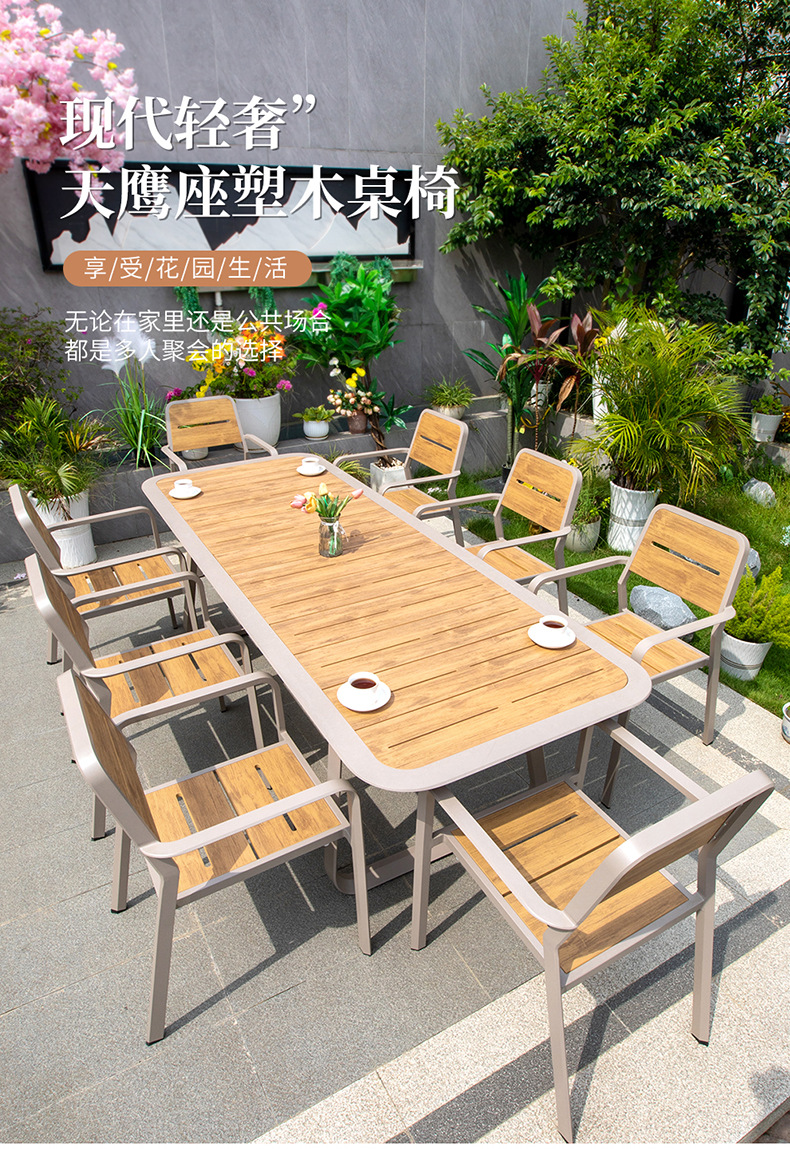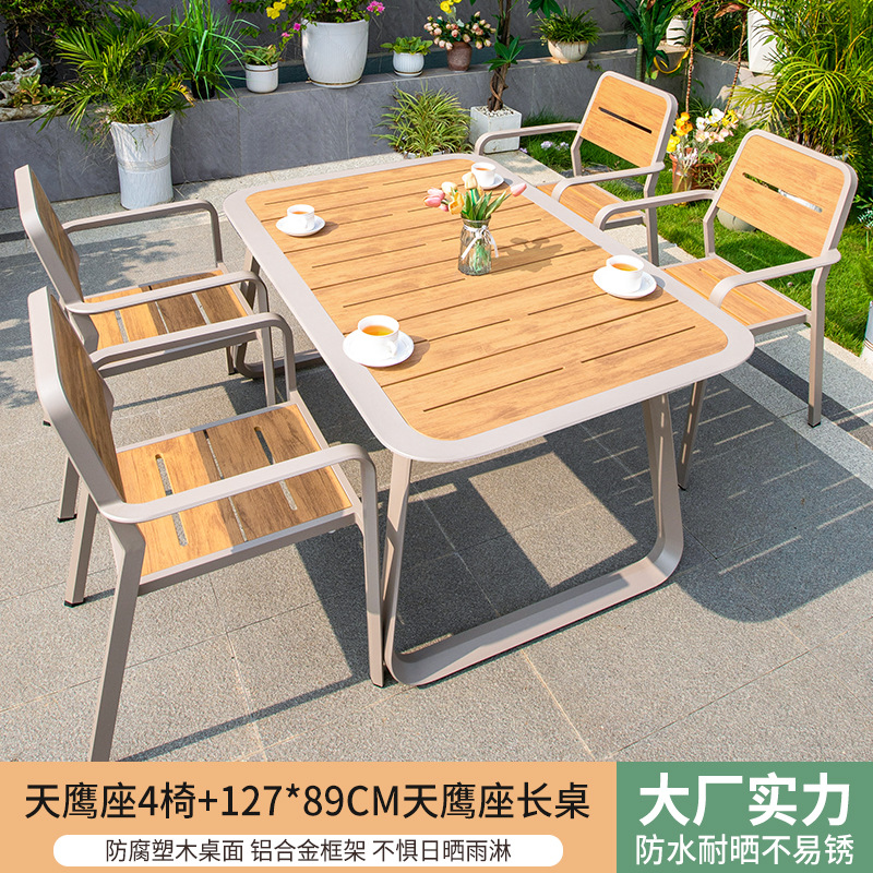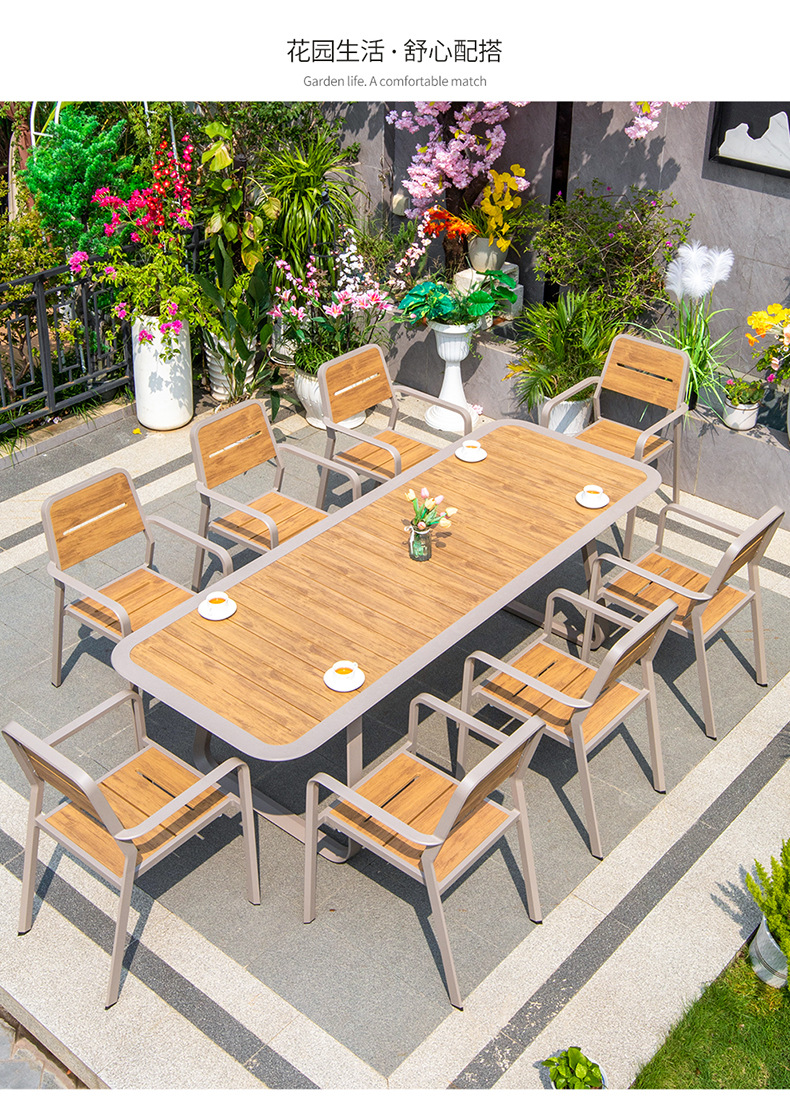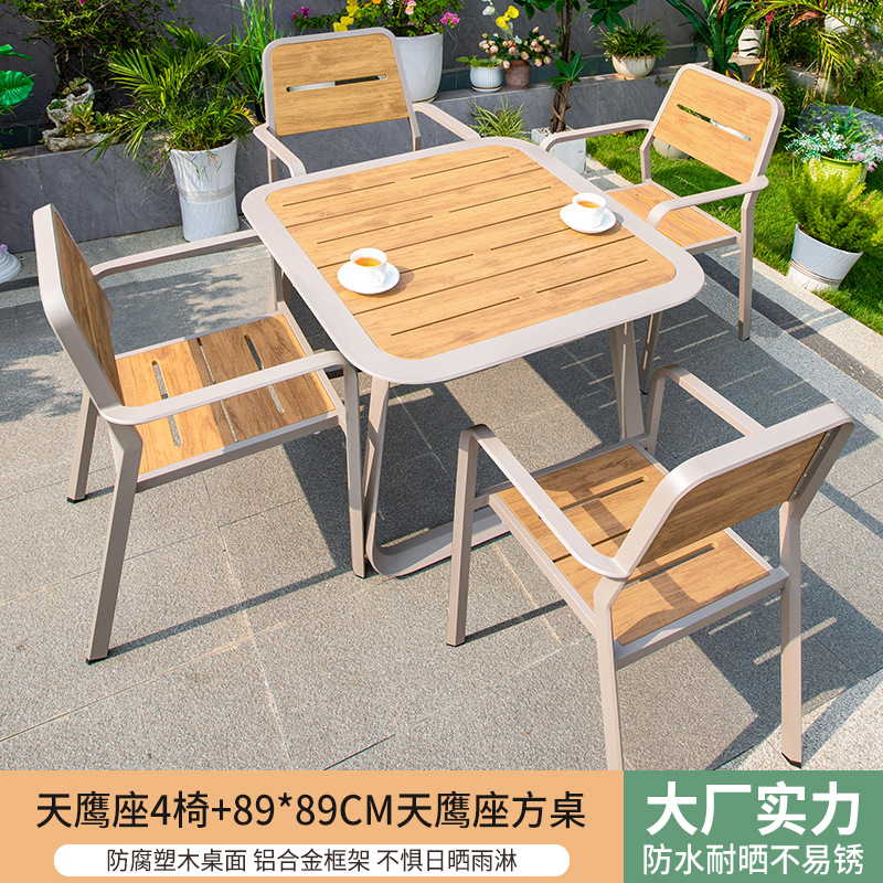 야외 테이블과 의자, 안뜰 부식 방지 목재 발코니 플라스틱 목재 카페 간단한 등받이 의자 야외 정원 가구 식탁스토어 가기