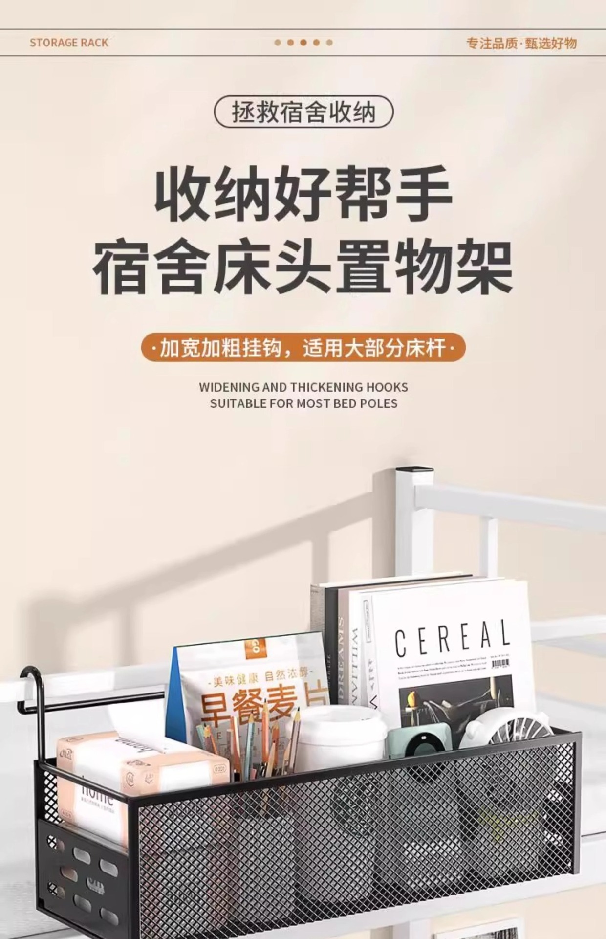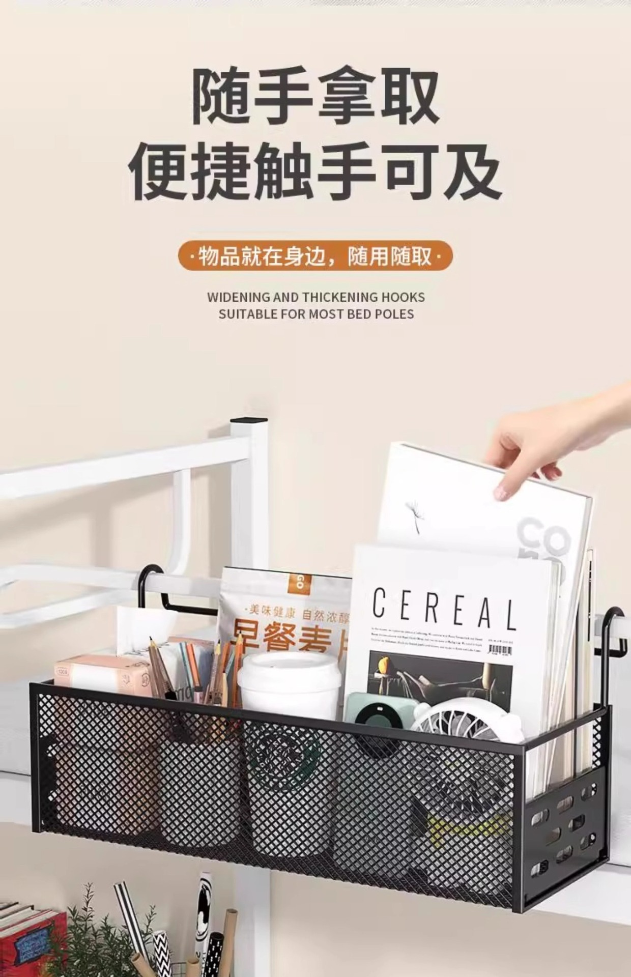 기숙사 침대 옆 교수형 바구니 침대 선반 상단 벙크 교수형 침대 옆 좋은 것 유물 침실 펀치 프리 스토리지 랙
