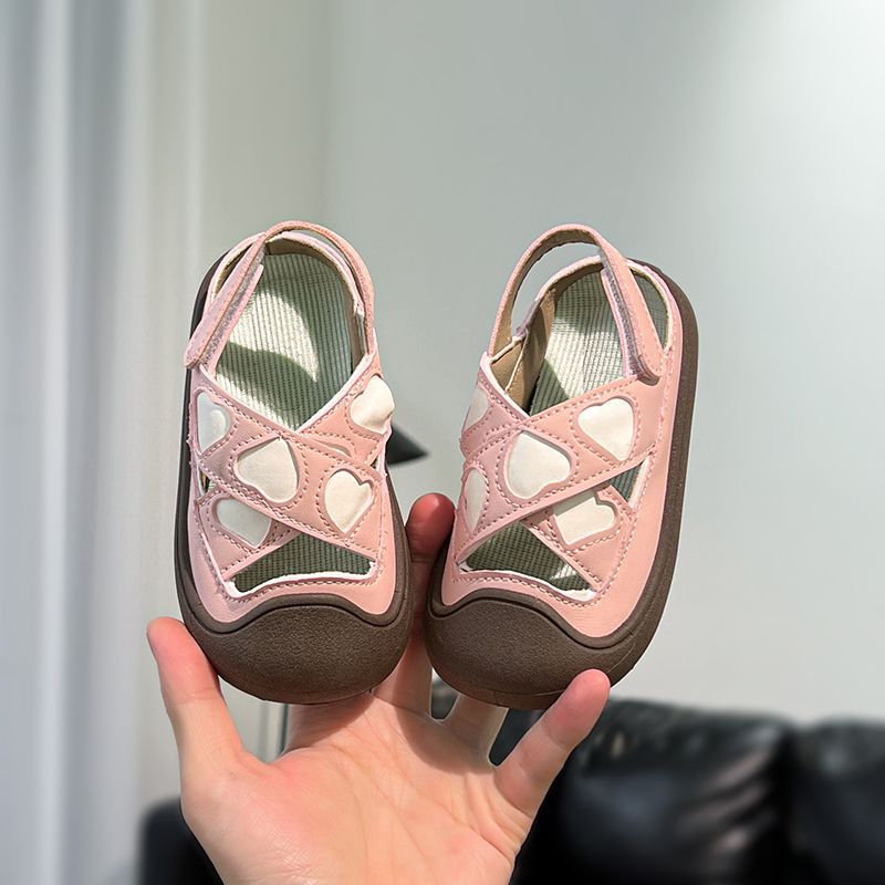 여아 샌들, 여름 스타일, 패셔너블한 러브 스니커즈, 여아 공주 스타일 가죽 신발, 여아 인터넷 연예인 야외 해변 신발스토어 가기