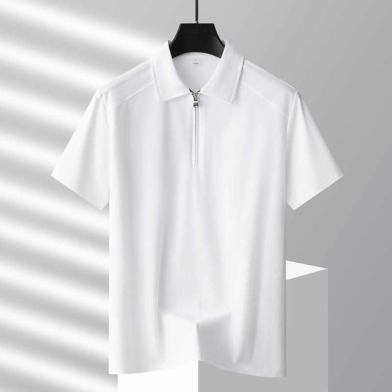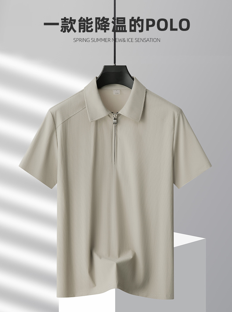 가벼운 럭셔리 쿨 캐주얼 스포츠 티셔츠 여름 새로운 아이스 실크 빠른 건조 남성 반팔 티셔츠 지퍼 롭 폴로 셔츠스토어 가기