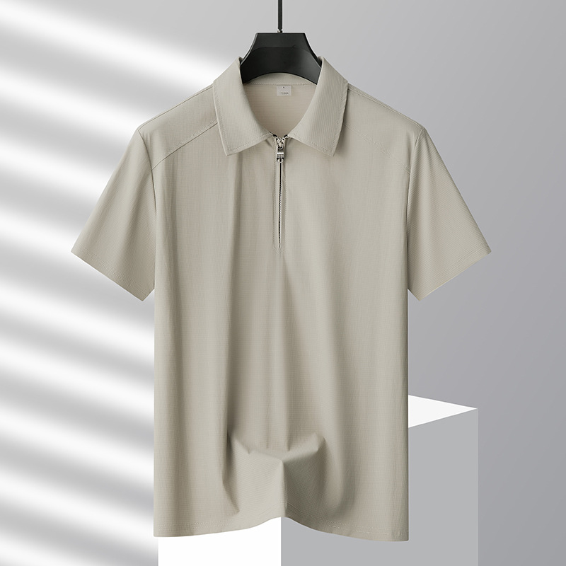 가벼운 럭셔리 쿨 캐주얼 스포츠 티셔츠 여름 새로운 아이스 실크 빠른 건조 남성 반팔 티셔츠 지퍼 롭 폴로 셔츠