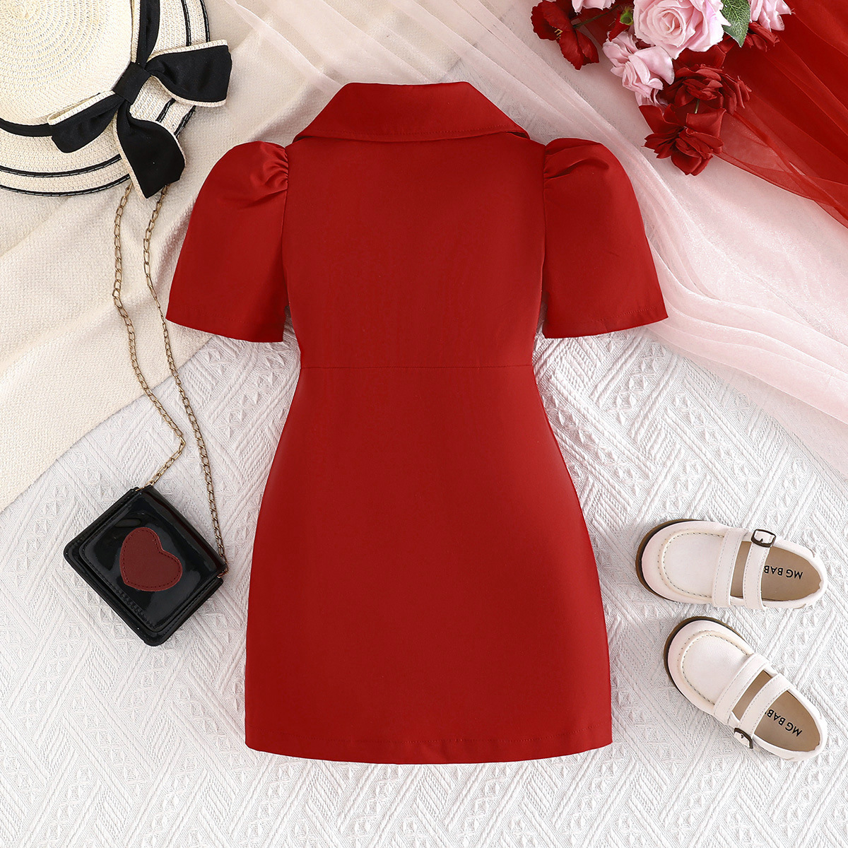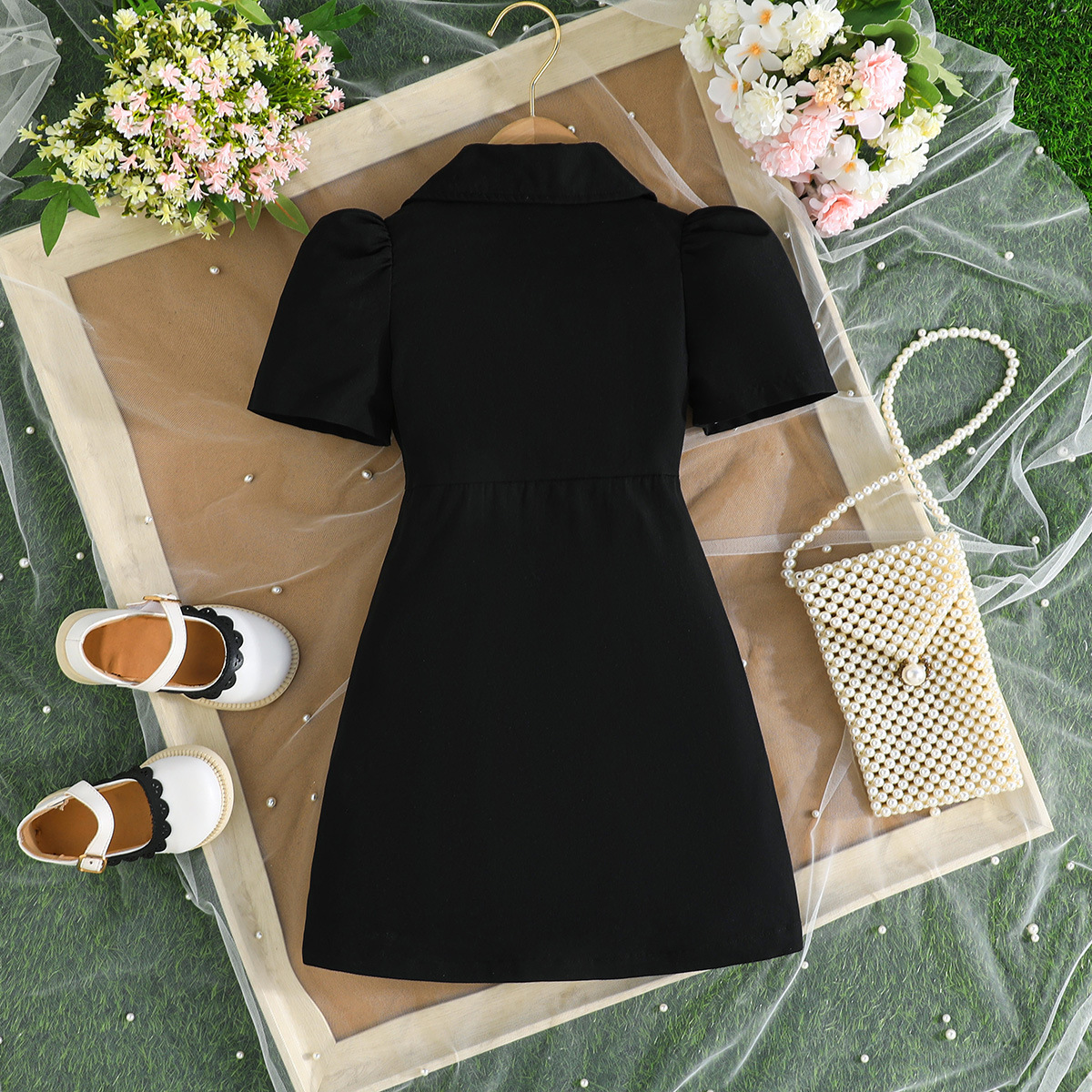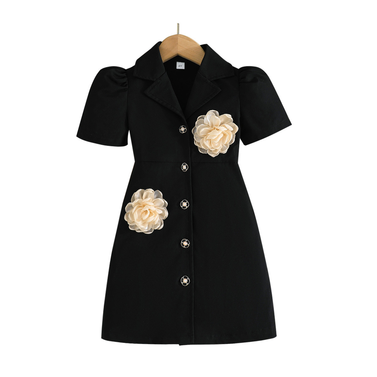 2025 새로운 국경 여름 새로운 소녀 단색 반팔 세트 이전에 주문 꽃 패션 원피스