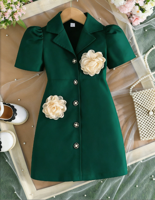 2025 새로운 국경 여름 새로운 소녀 단색 반팔 세트 이전에 주문 꽃 패션 원피스스토어 가기