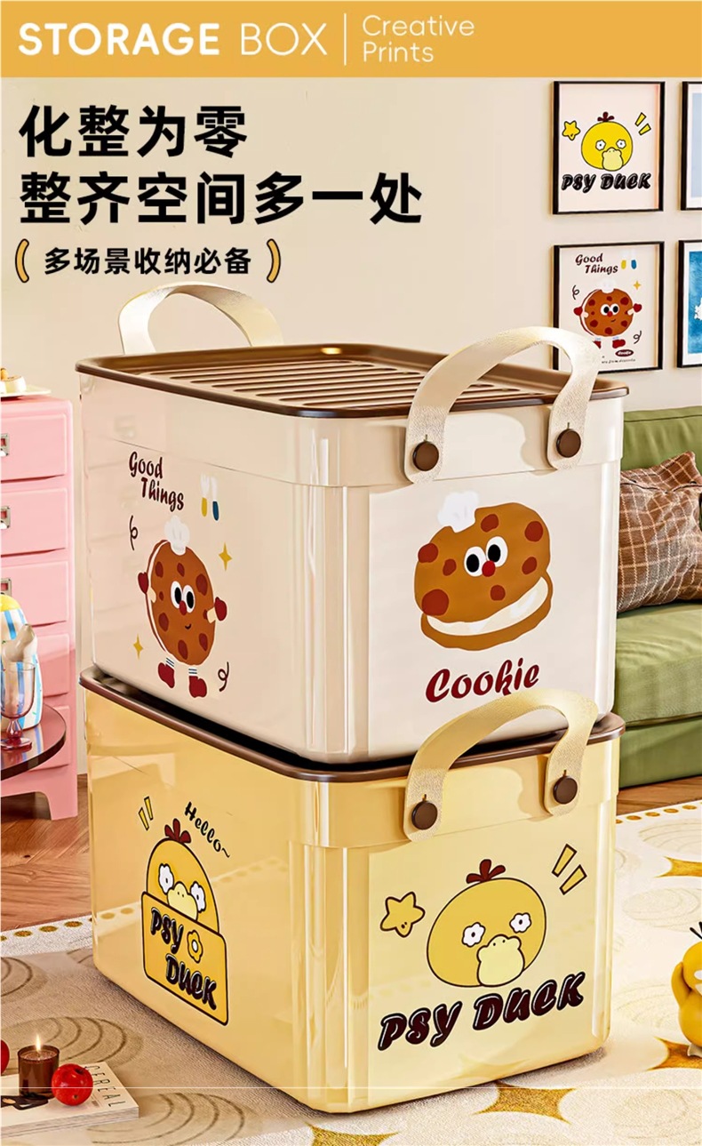 뚜껑이 있는 잡화 보관 상자, 다기능 어린이 간식 및 장난감 보관 바구니, 플라스틱 데스크탑 보관 도매스토어 가기