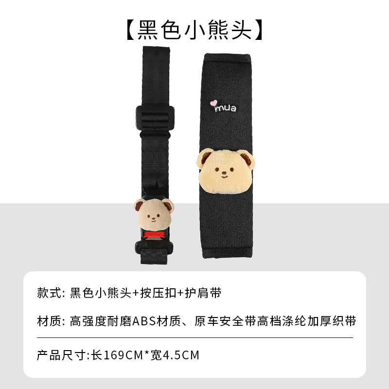 • [업그레이드된 편안한 새로운 스타일] 두두베어 - 블랙 임산부 안전벨트 + 무아 두두베어 면마 어깨패드 [2종세트]