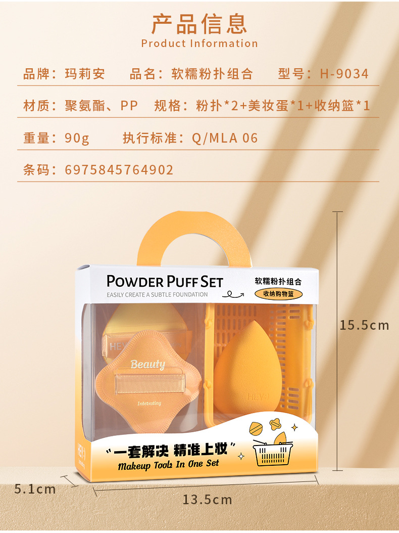 마리안 소프트 파우더 퍼프 세트 마시멜로 파우더 퍼프 Q-탄력 부드럽고 가루가 잘 안 붙는 섬세하고 밀착되는 뷰티 에그 9034