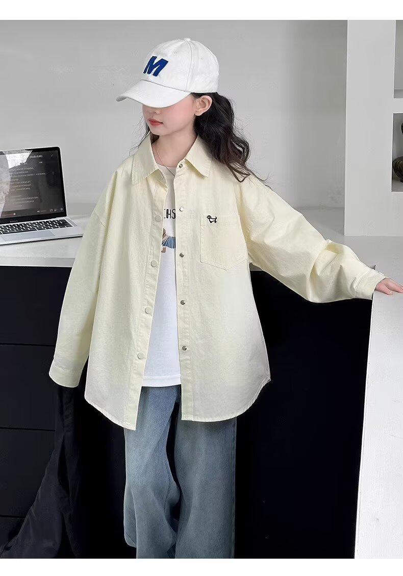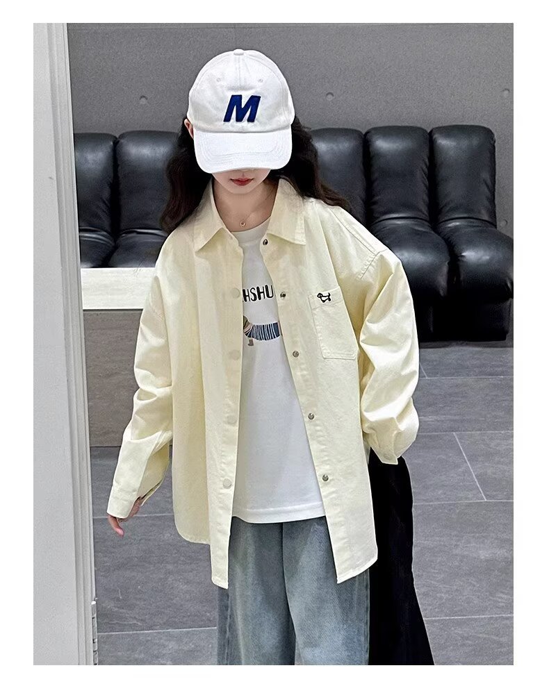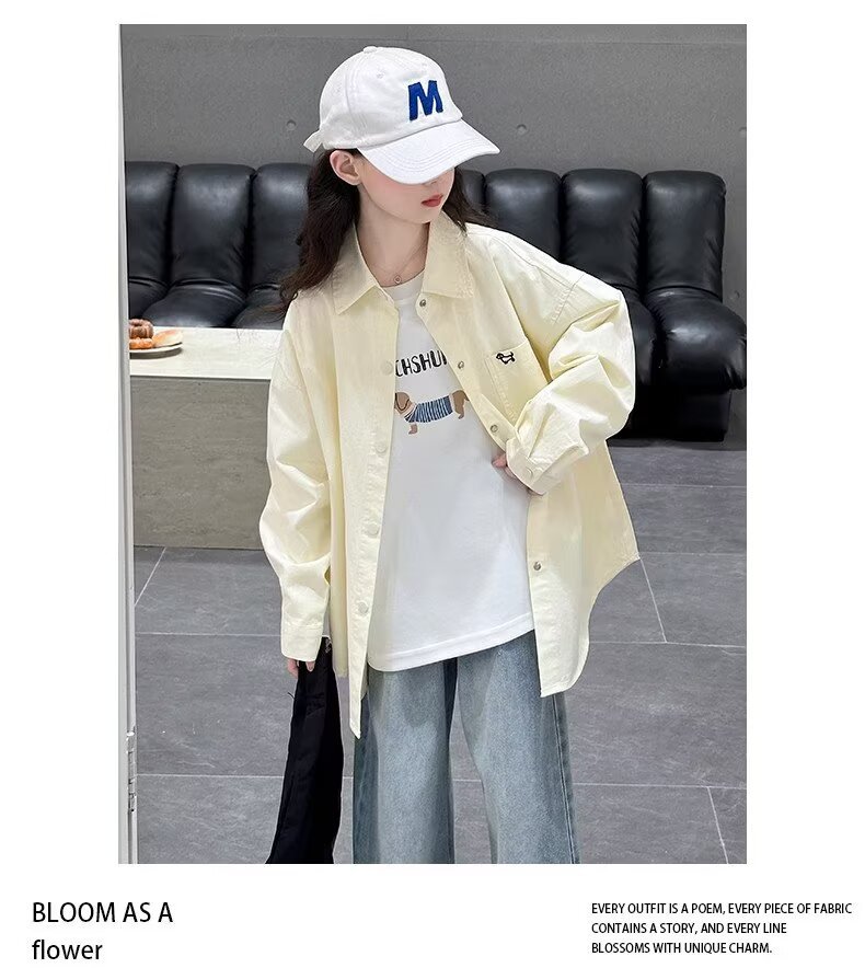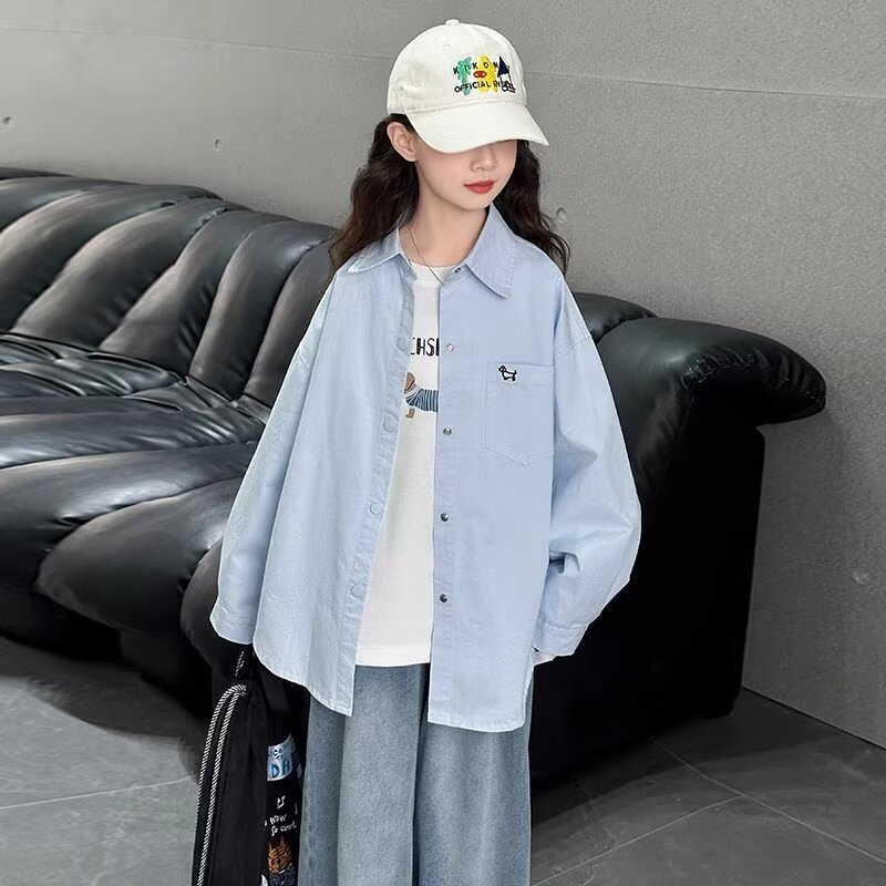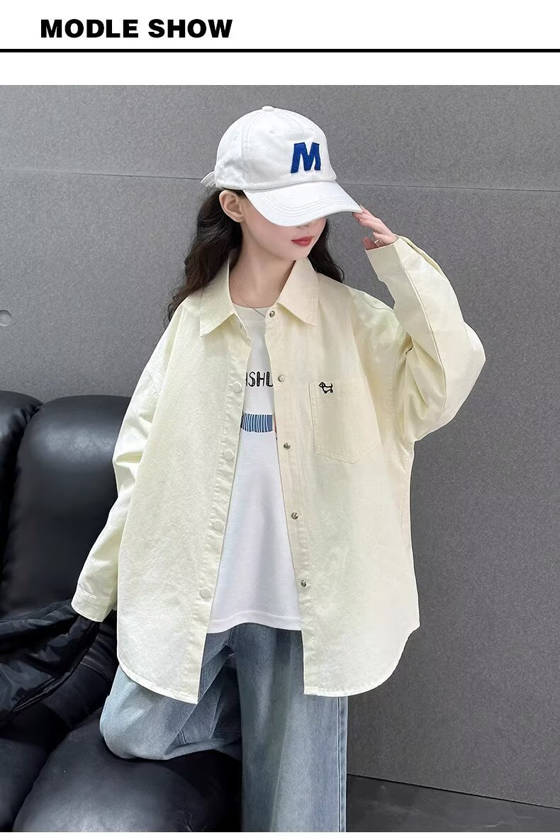 2025 아동복 긴팔 셔츠 일본 홍콩 스타일 ins 루즈 셔츠 소년 소녀 여름 트렌드 다용도 캐주얼 재킷스토어 가기