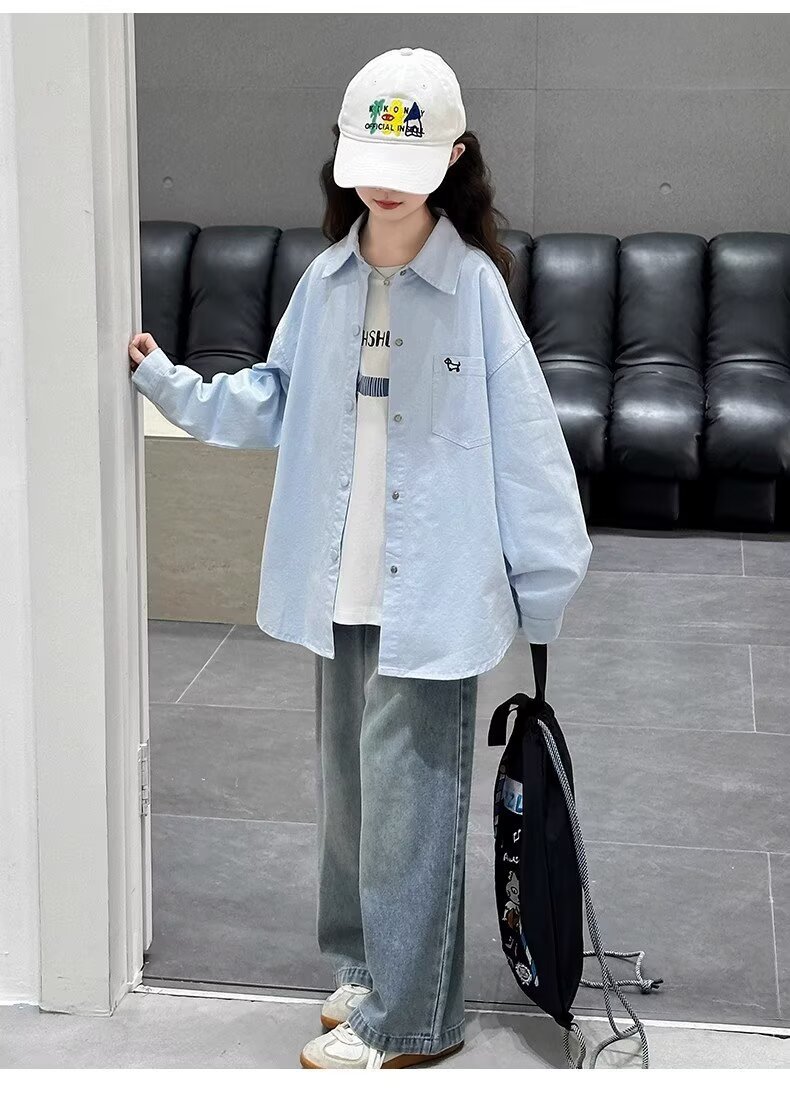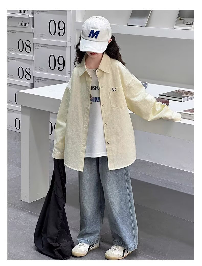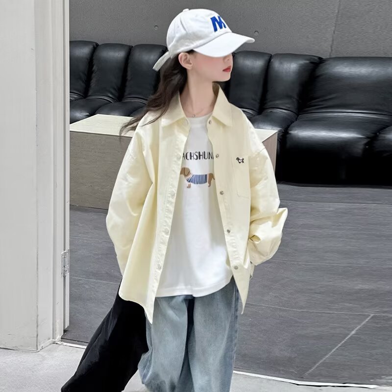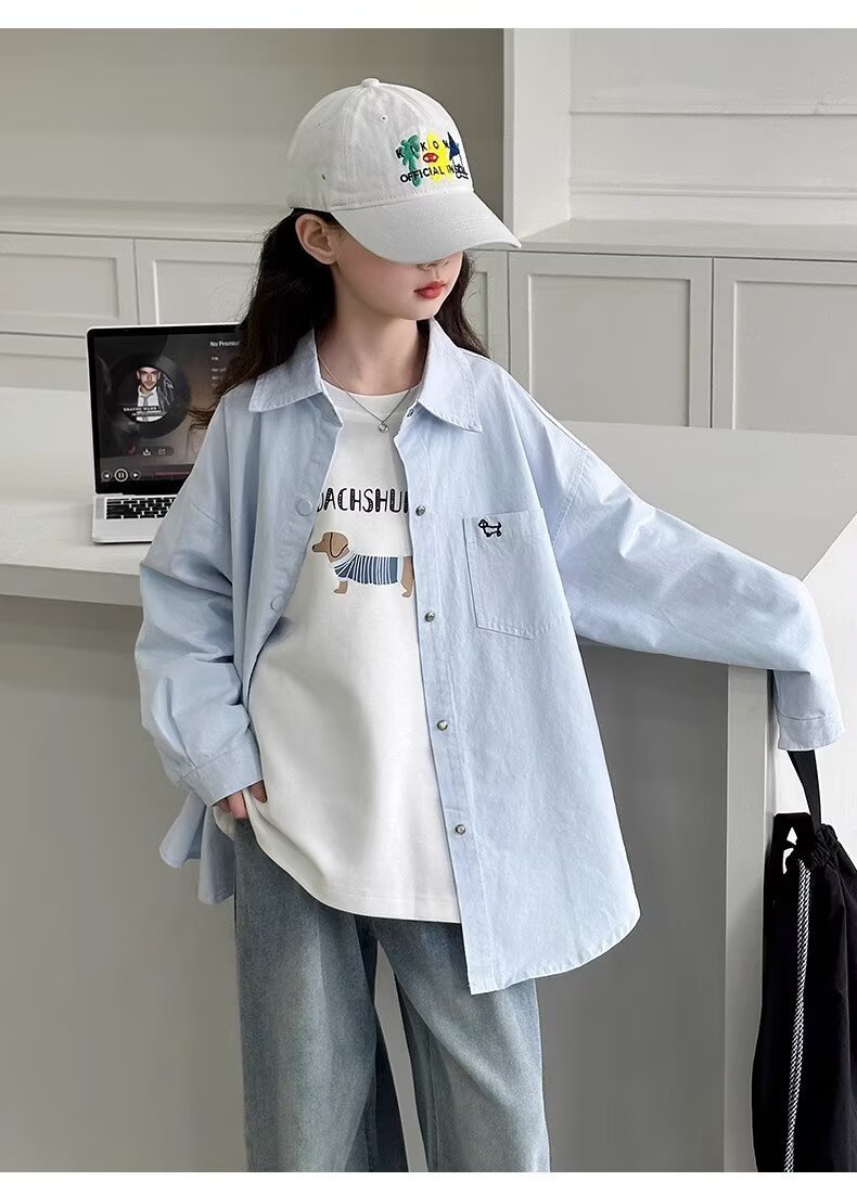 2025 아동복 긴팔 셔츠 일본 홍콩 스타일 ins 루즈 셔츠 소년 소녀 여름 트렌드 다용도 캐주얼 재킷스토어 가기