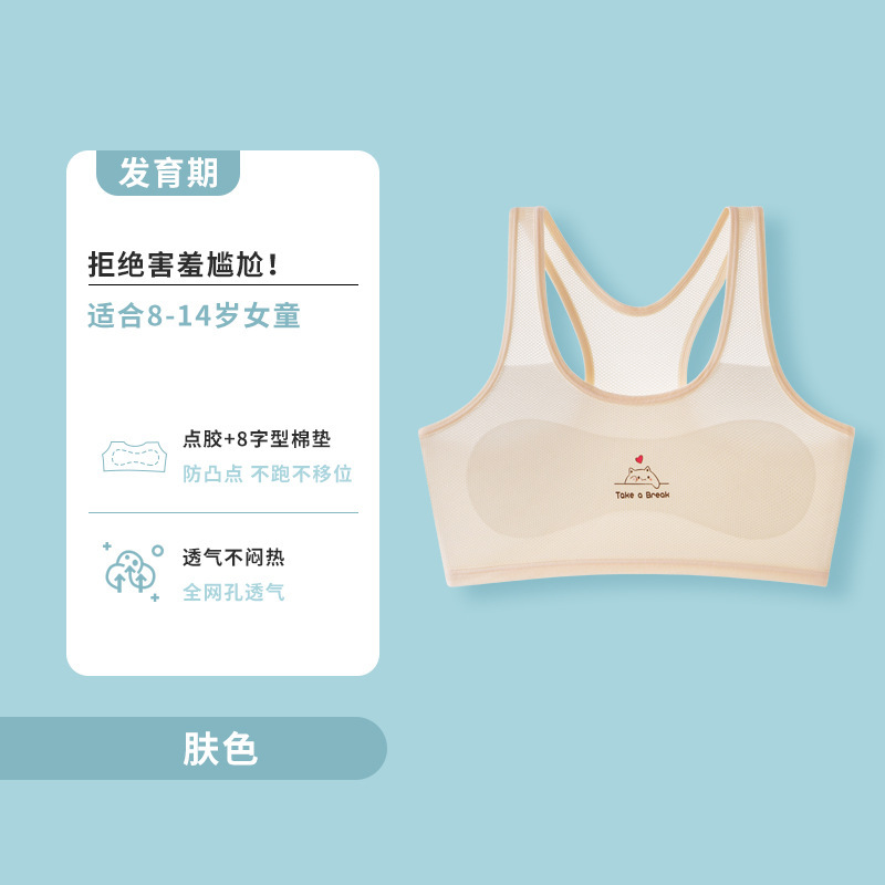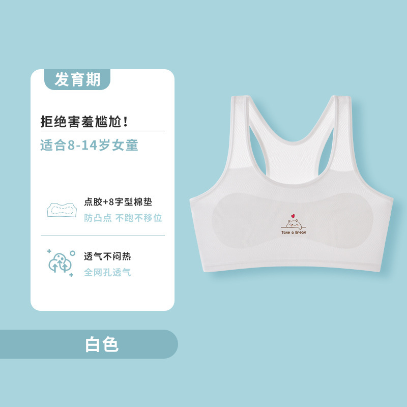 끈이없는 여학생 초등학생 개발 여아 속옷 여학생 얇은 메쉬 작은 조끼 착용