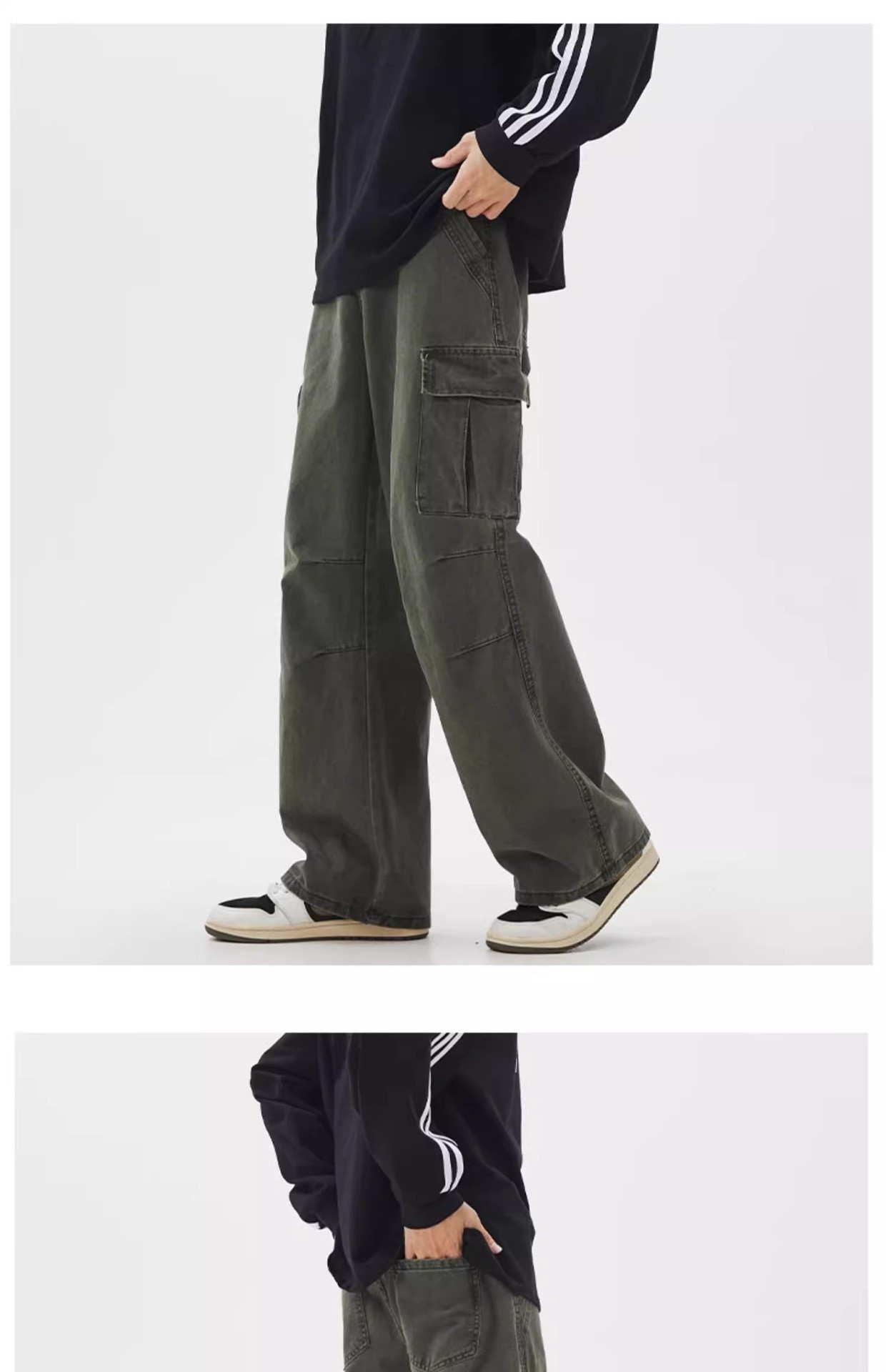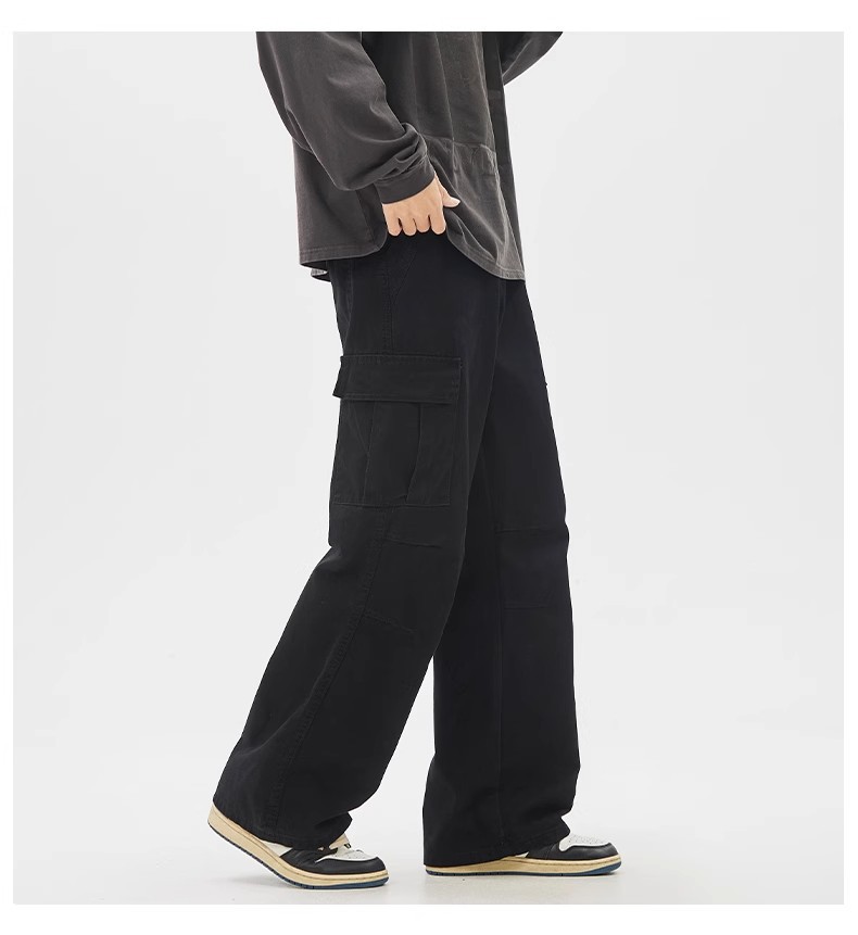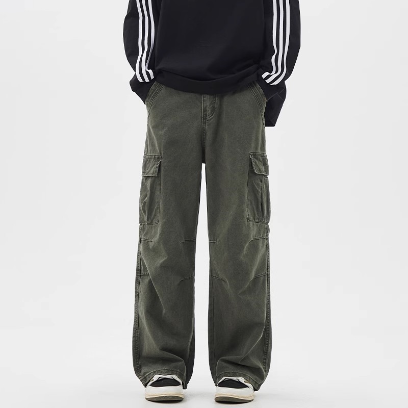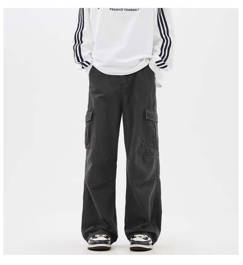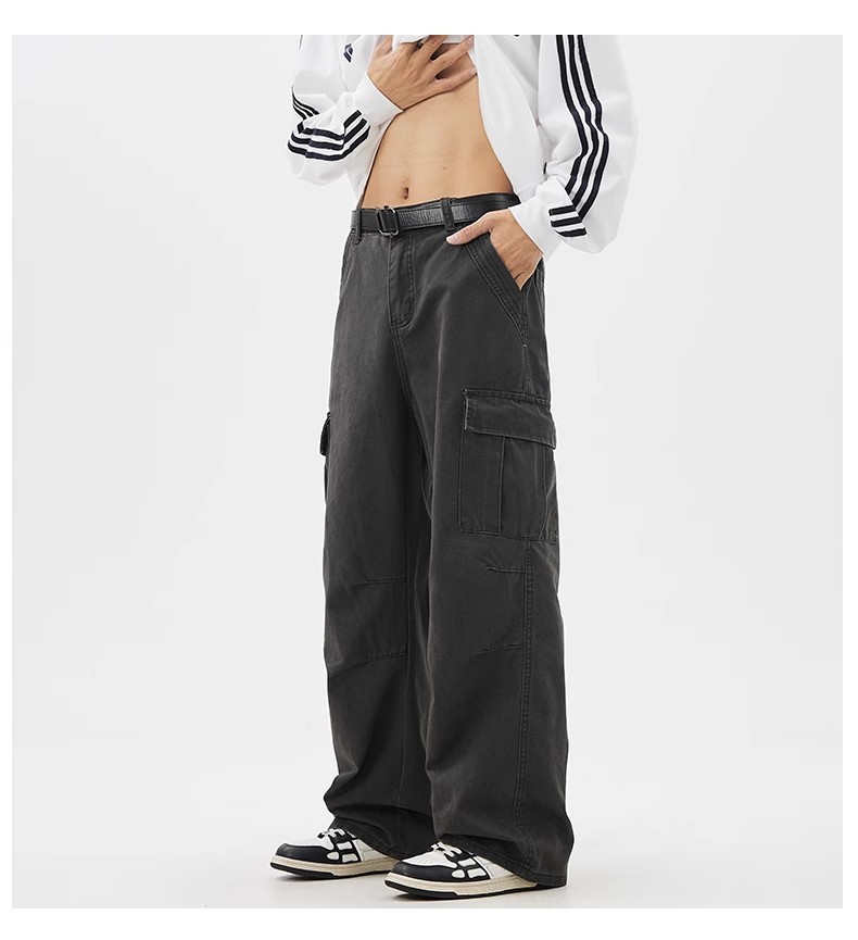 소년을위한 공장 직접 공급 작업복 2025 여름 새로운 느슨한 넓은 다리 캐주얼 바지 남성용 멀티 포켓 충전 바지
