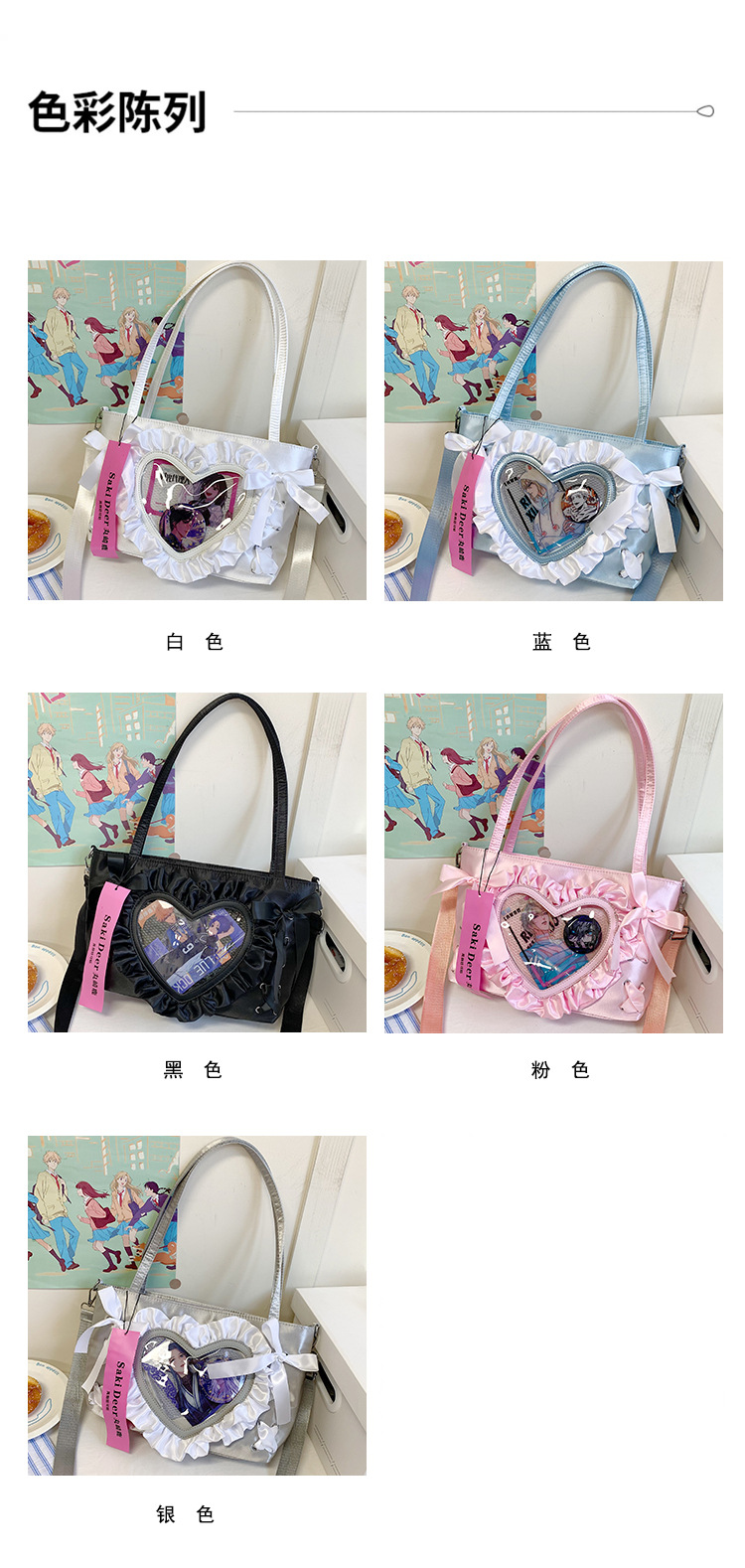 새로운 일본식 ins 달콤하고 멋진 소녀 2차원 투명 통증 가방 숄더백 러브 레이스 발레 스타일 겨드랑이 가방
