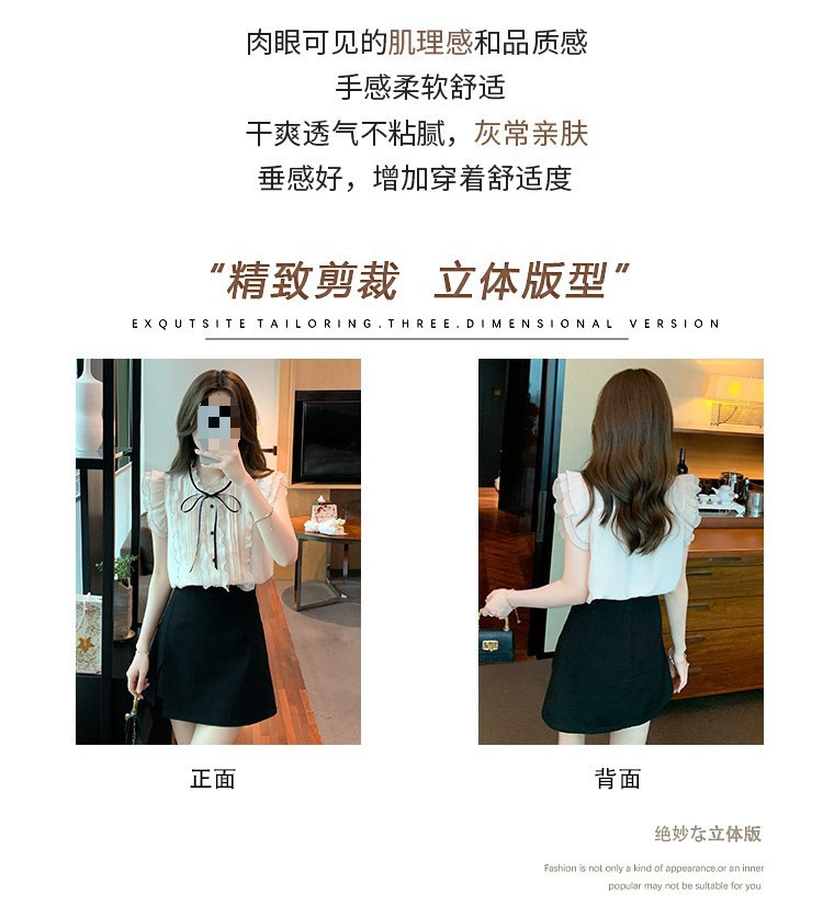 여성용 프렌치 슈퍼 요정 보우 타이 쉬폰 셔츠, 틈새 디자인, 나이를 줄여주는 플라잉 슬리브