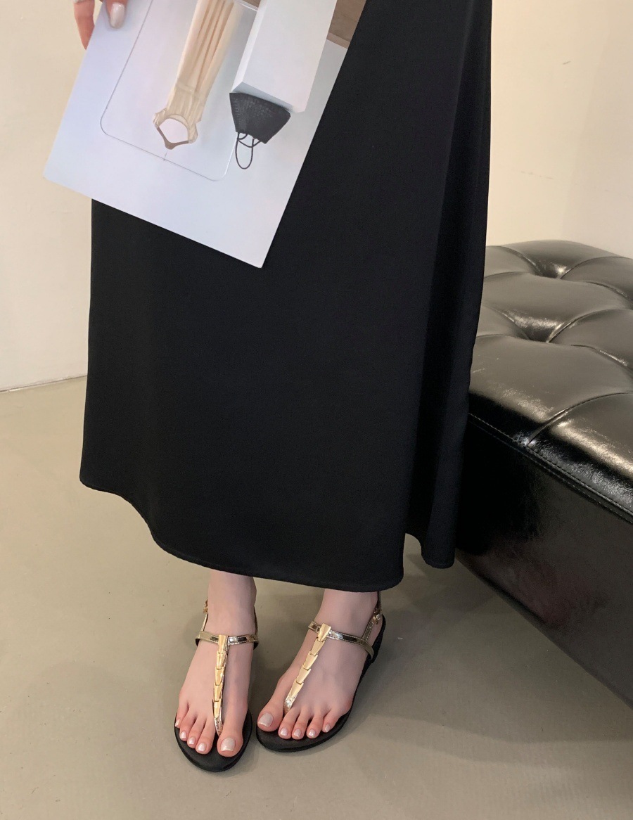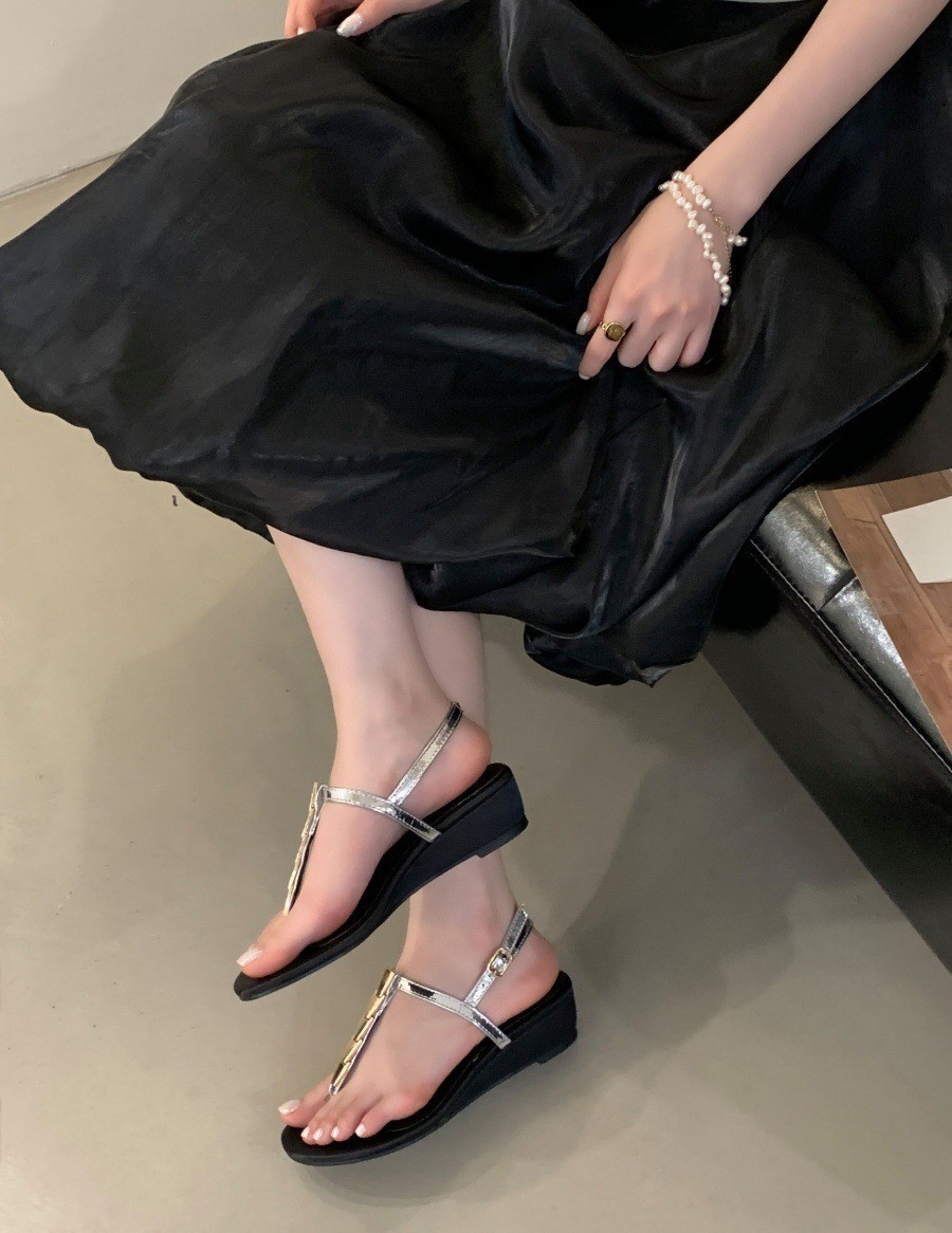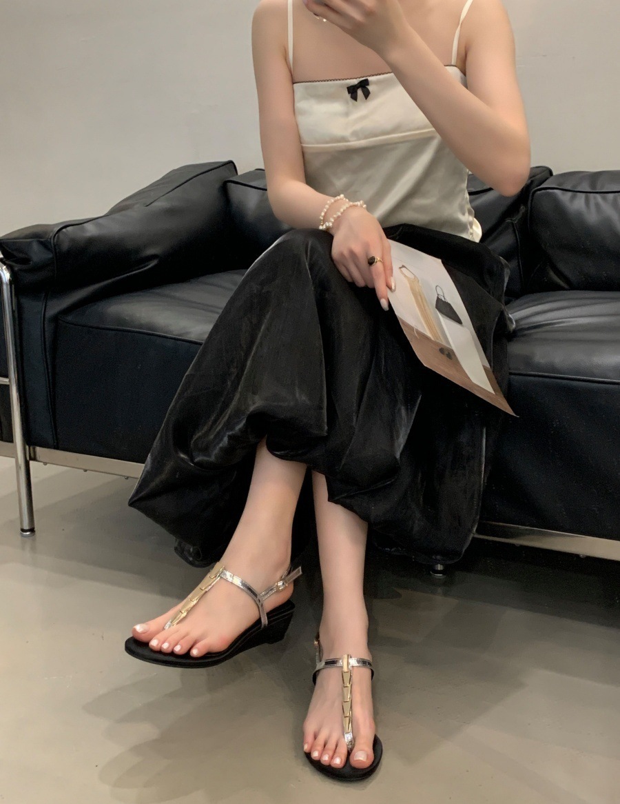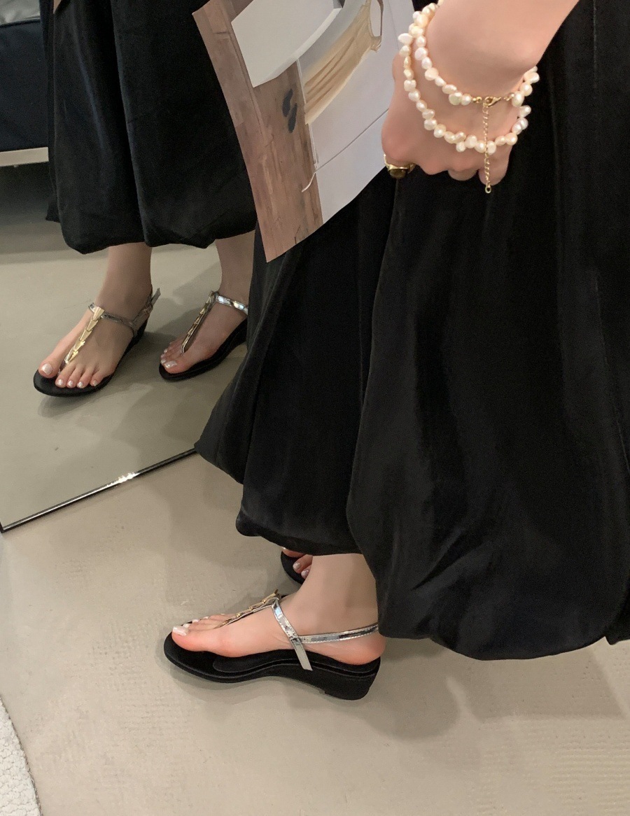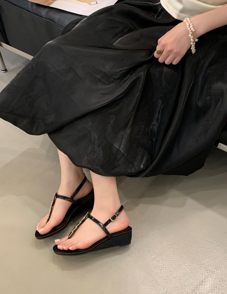 여성을위한 슈퍼 핫 플립 플롭 샌들 2025 새로운 두꺼운 굽 프랑스 요정 스타일 스커트 로마 신발스토어 가기