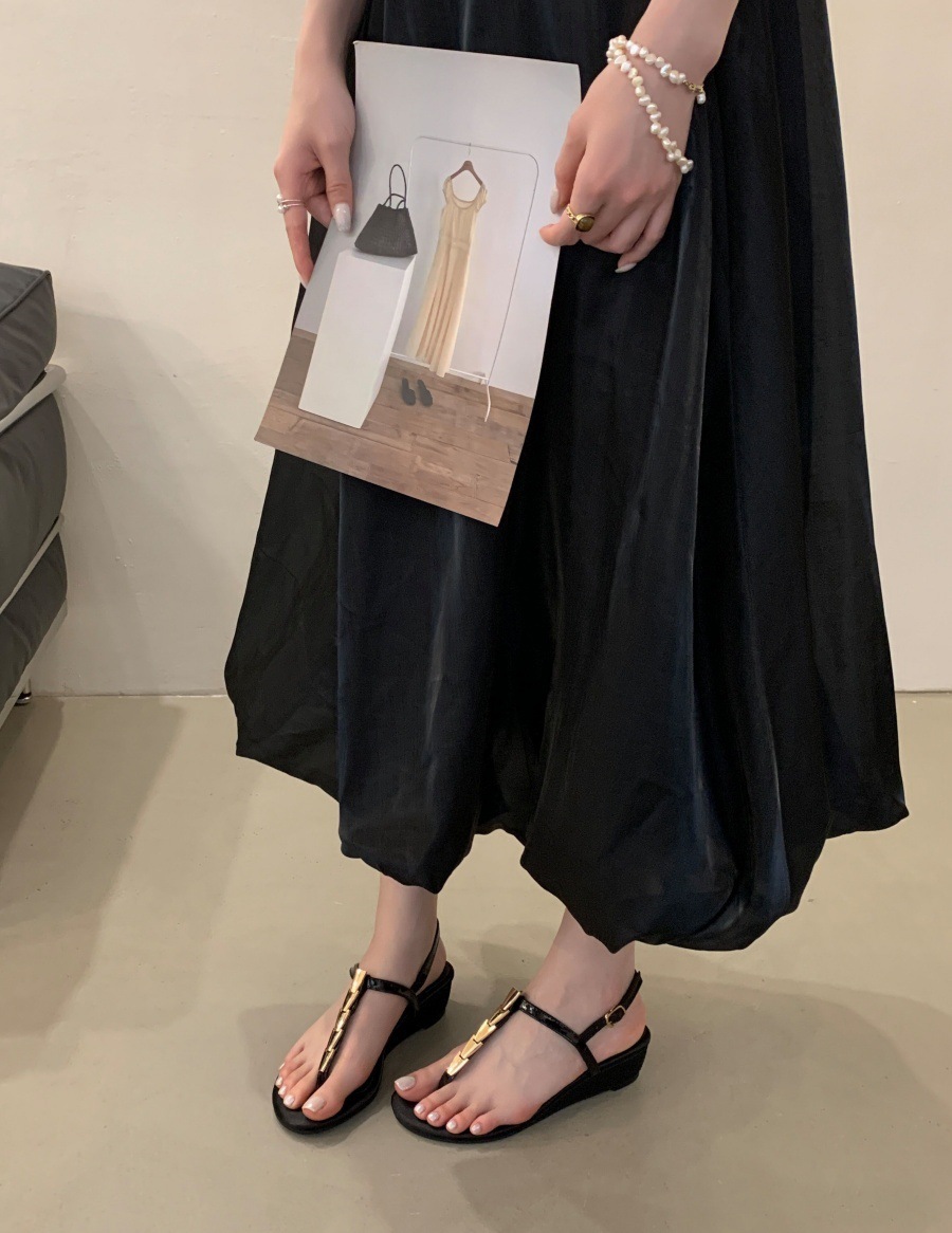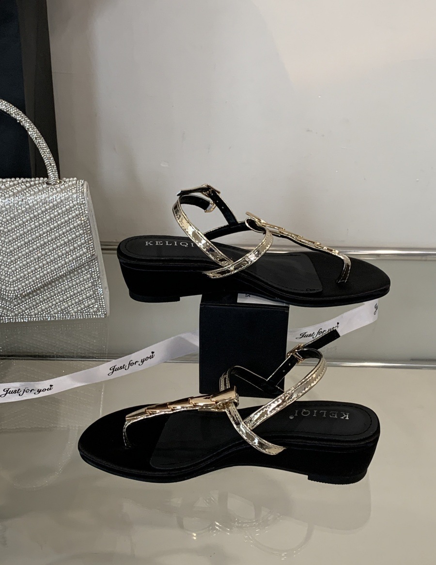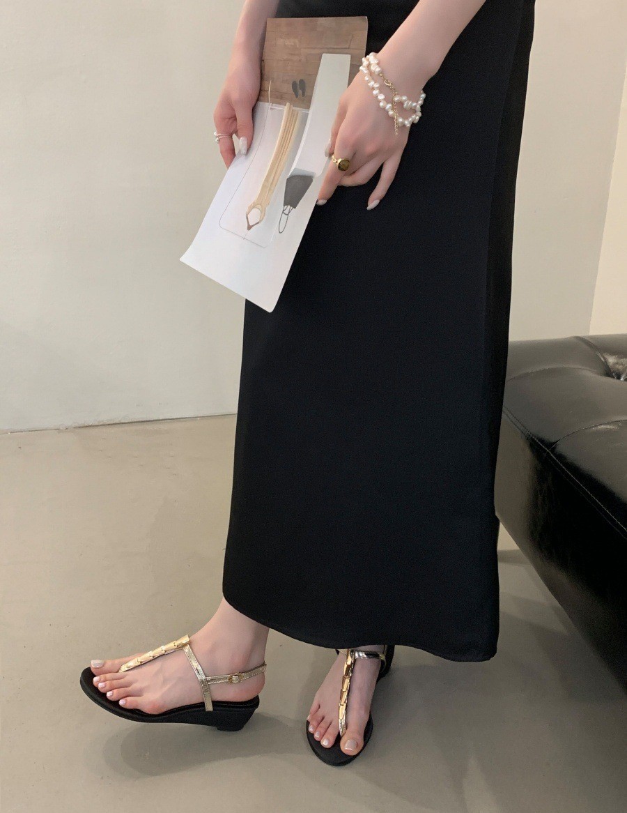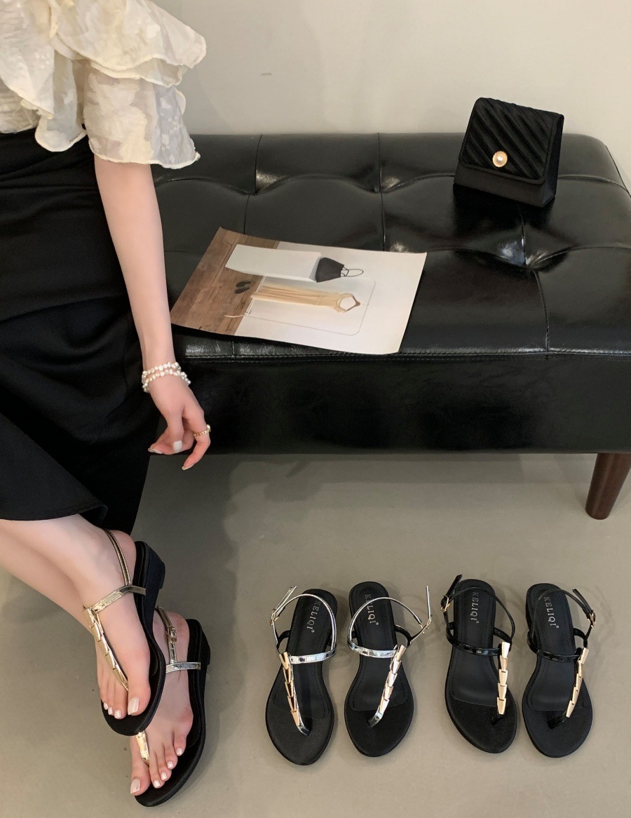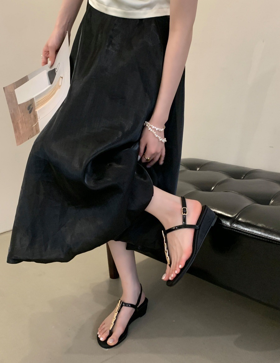 여성을위한 슈퍼 핫 플립 플롭 샌들 2025 새로운 두꺼운 굽 프랑스 요정 스타일 스커트 로마 신발스토어 가기