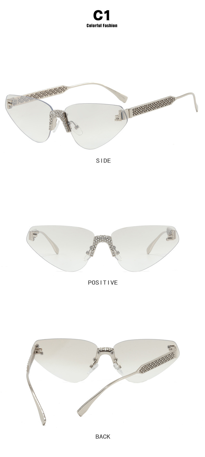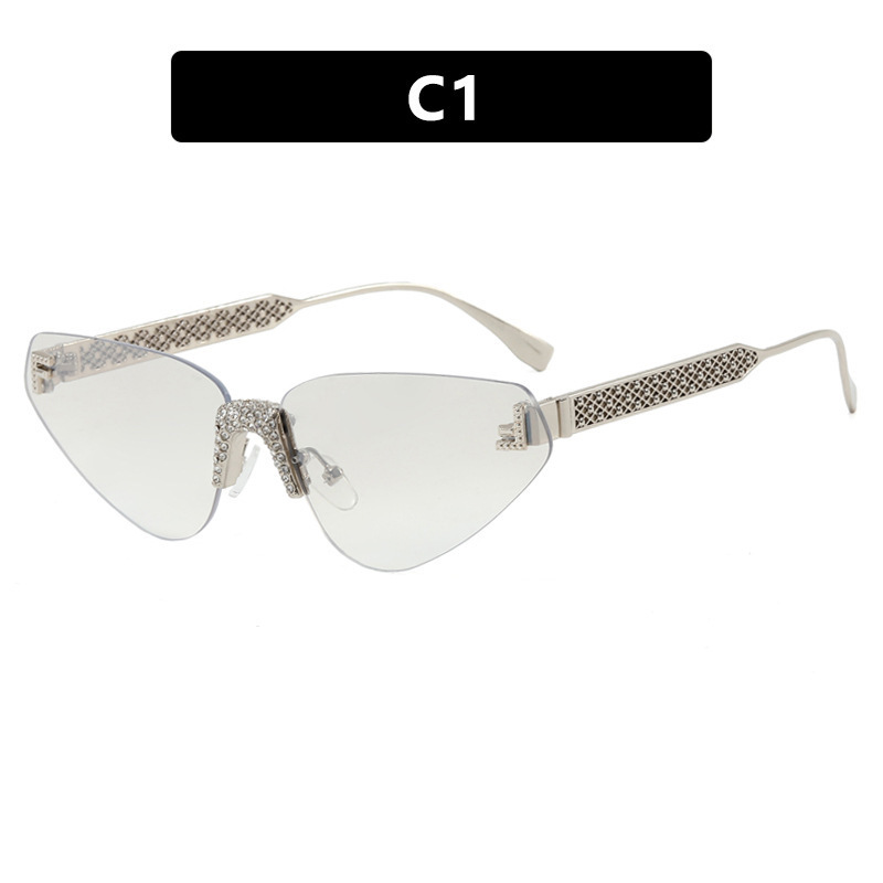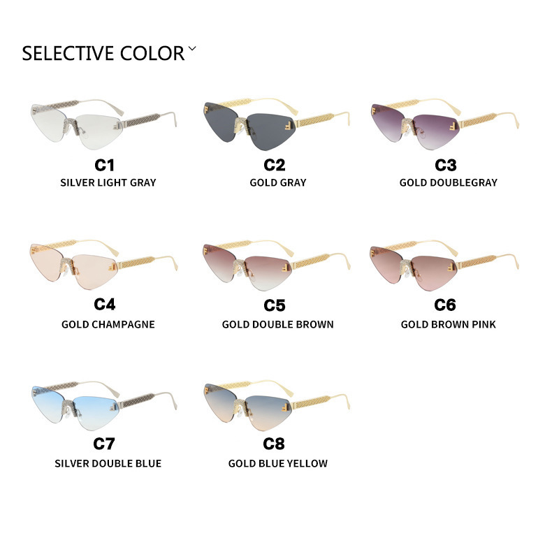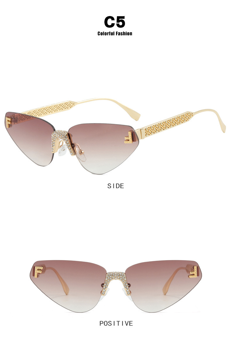 유럽과 미국의 패션 스트리트 스타일 선글라스 문자 F 무테 다이아몬드 삼각형 고양이 눈 2025 새로운 스타일 선글라스