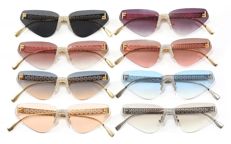 유럽과 미국의 패션 스트리트 스타일 선글라스 문자 F 무테 다이아몬드 삼각형 고양이 눈 2025 새로운 스타일 선글라스스토어 가기