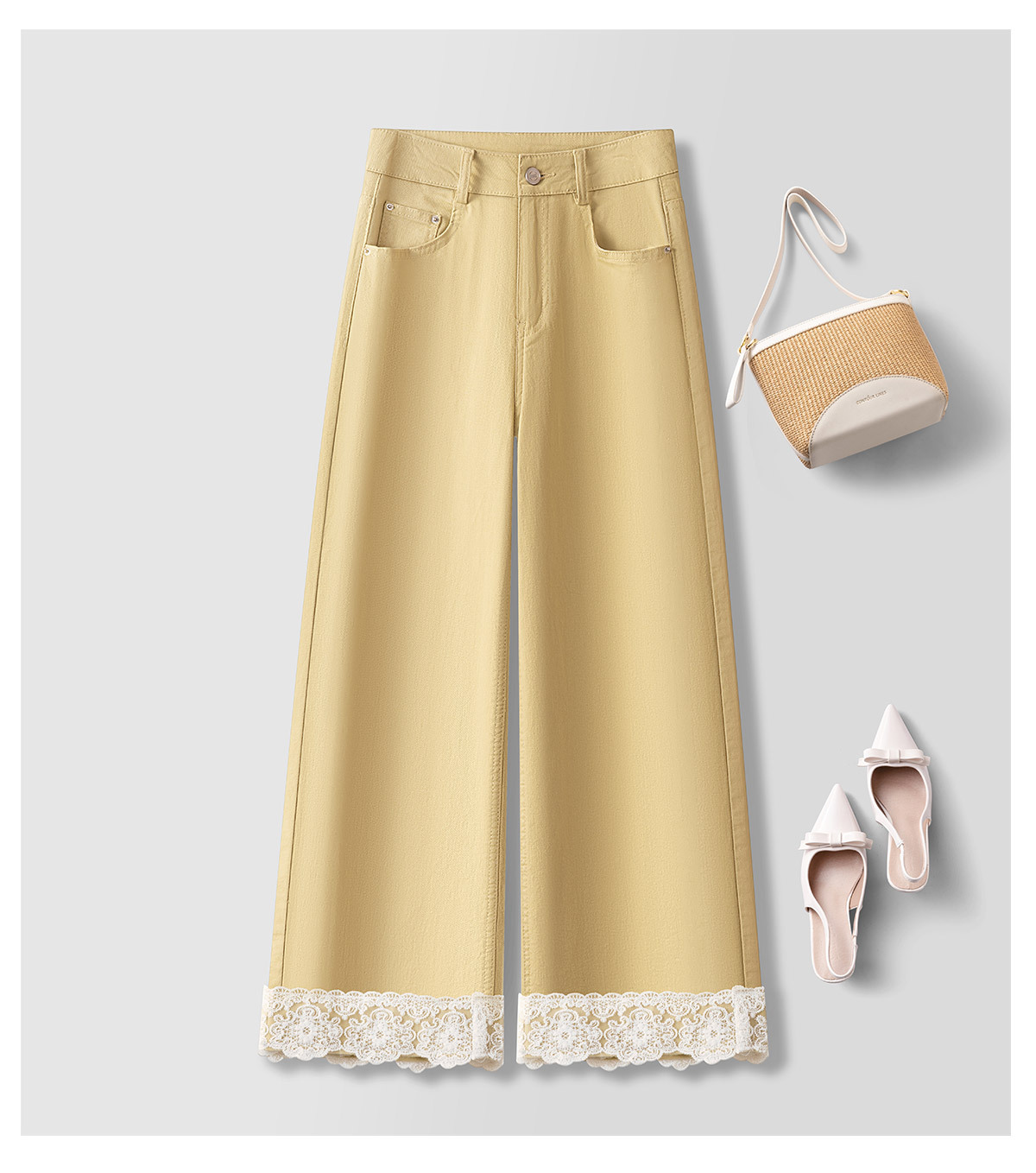 스타일리스트 연령 감소 청바지 넓은 다리 바지 여성 여름 2025 새로운 높은 허리 슬리밍 작은 캐주얼 자른 바지스토어 가기