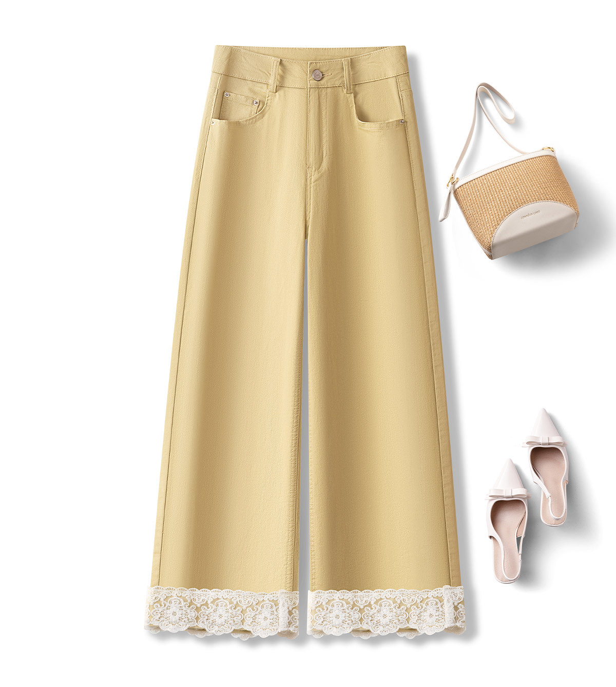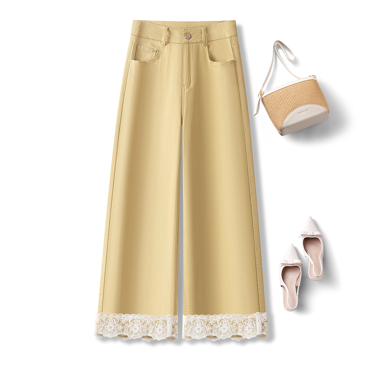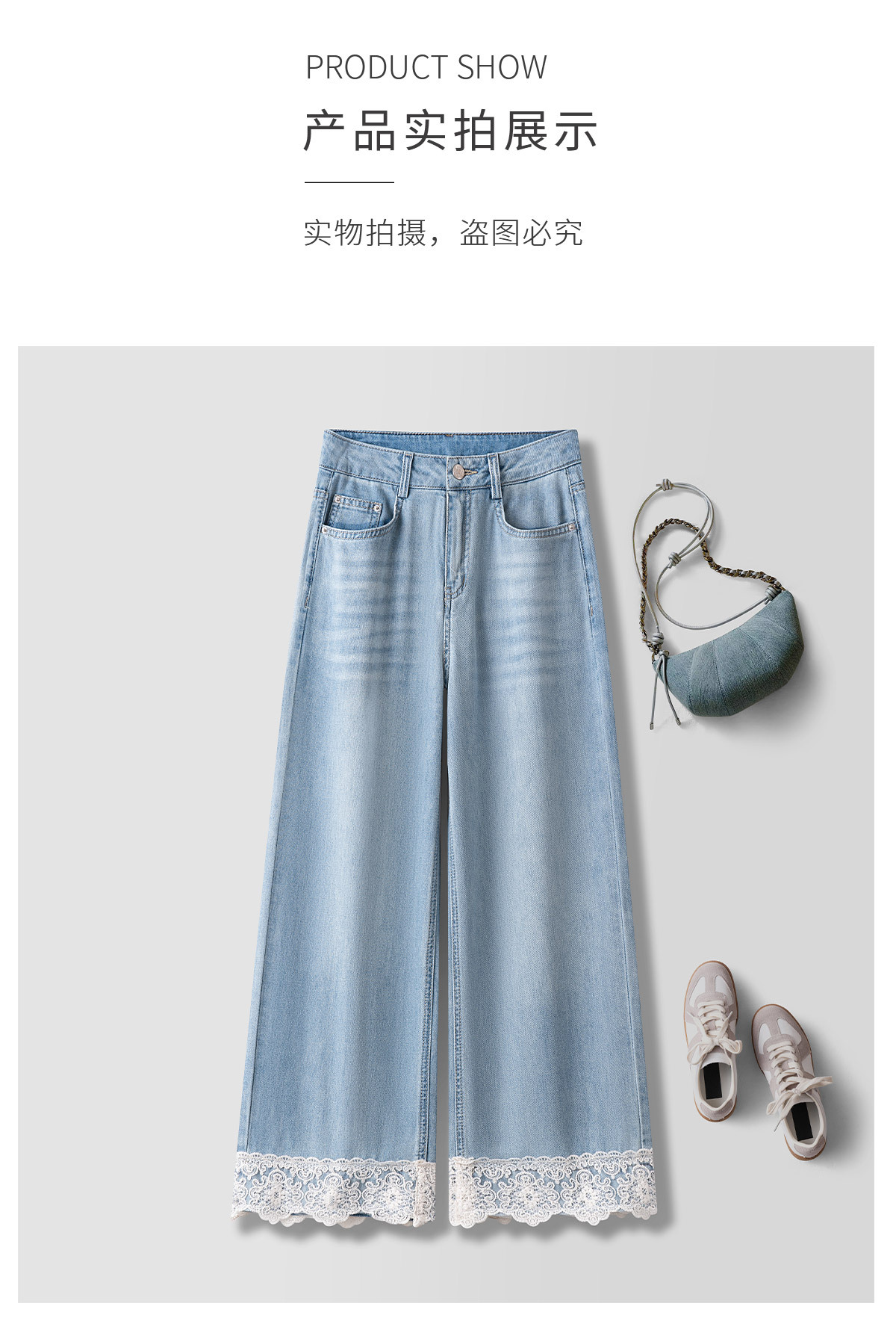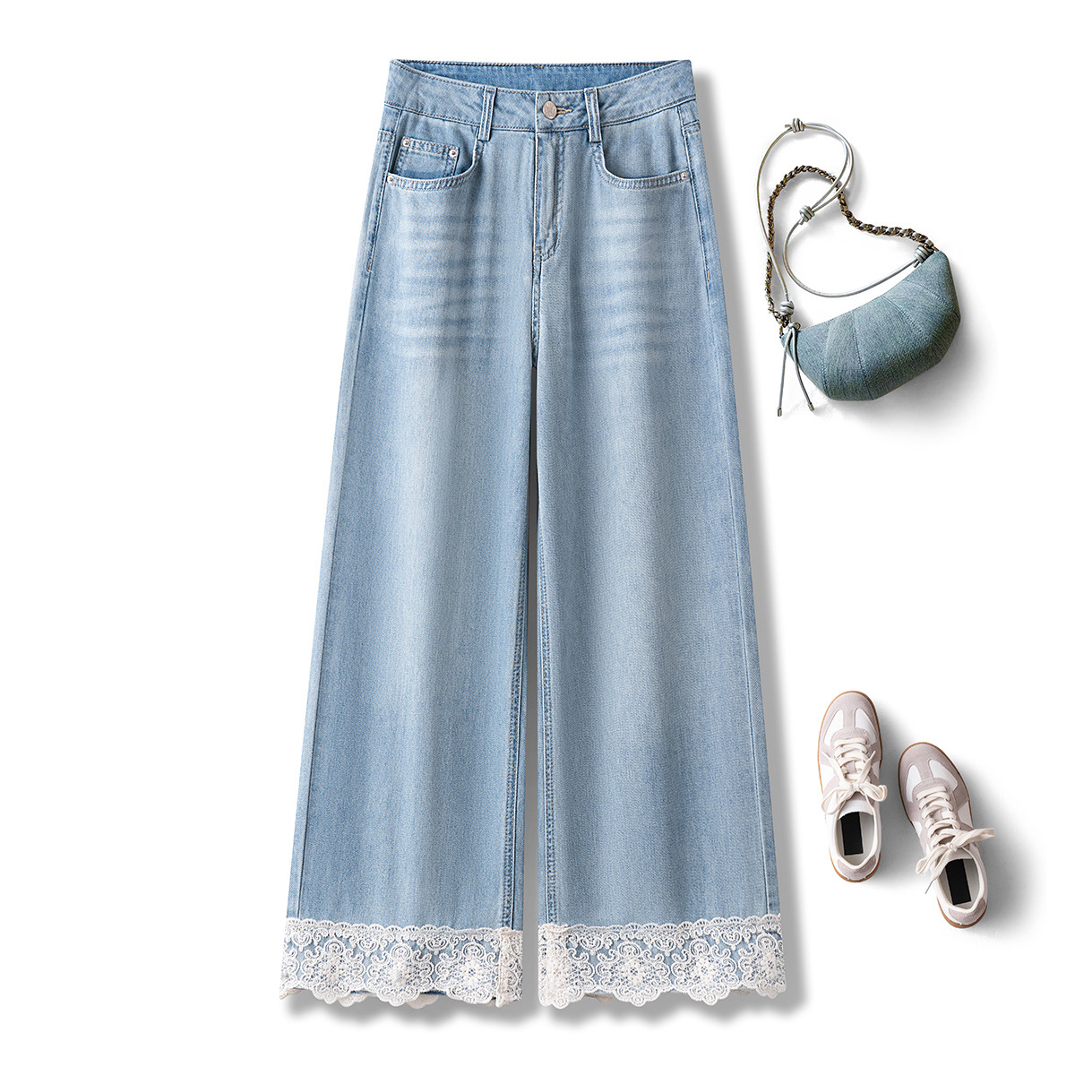 스타일리스트 연령 감소 청바지 넓은 다리 바지 여성 여름 2025 새로운 높은 허리 슬리밍 작은 캐주얼 자른 바지