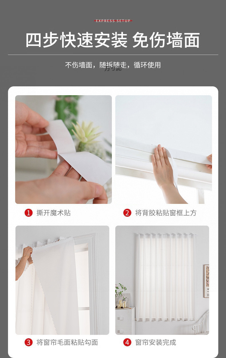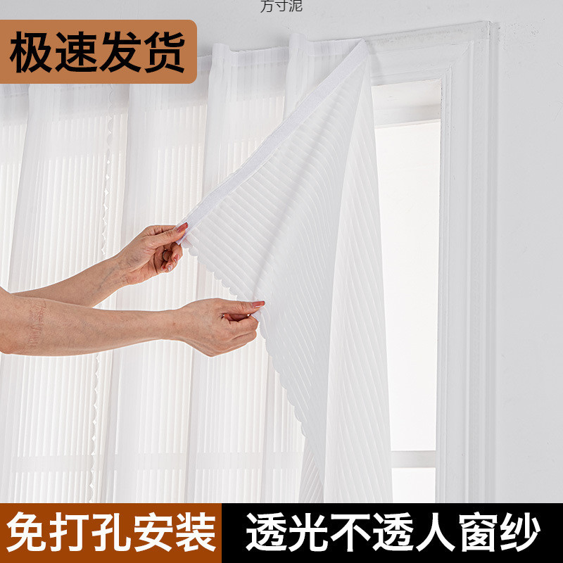 침실 발코니에 펀치 없이 설치하기 쉬운 창문 스크린 커튼, 임대 주택용 간단한 자체 접착 벨크로, 차광 및 불투명