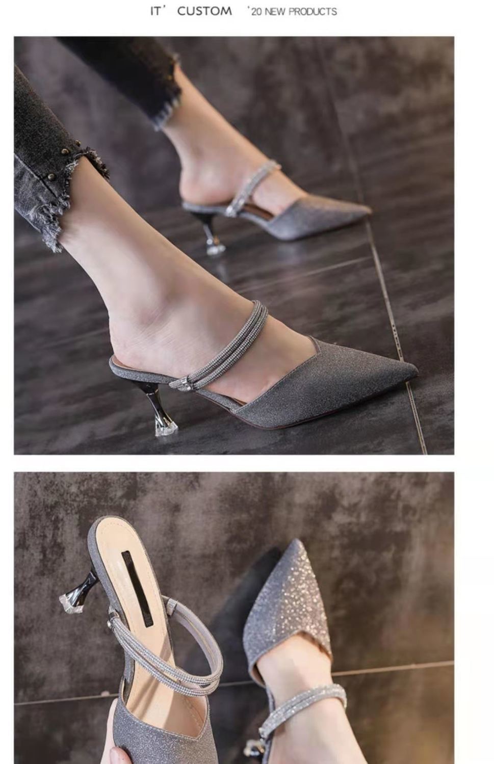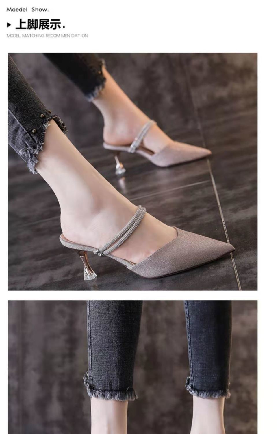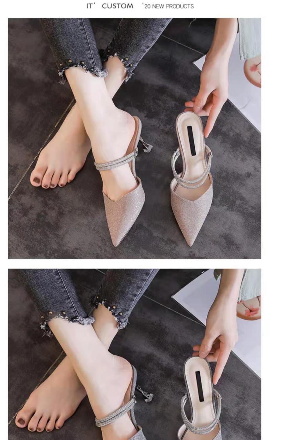 샌들 여성용 스틸레토 힐 하프 슈즈 하이힐 2025 봄과 여름 새로운 요정 우아한 한 단어 벨트 패션 투웨어 샌들스토어 가기