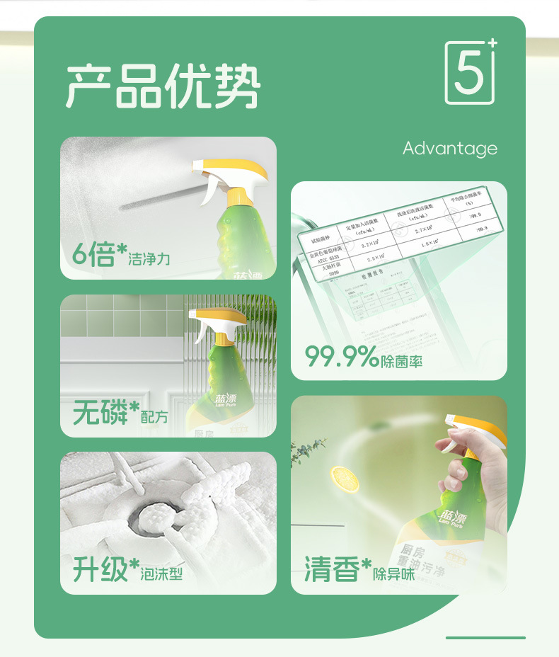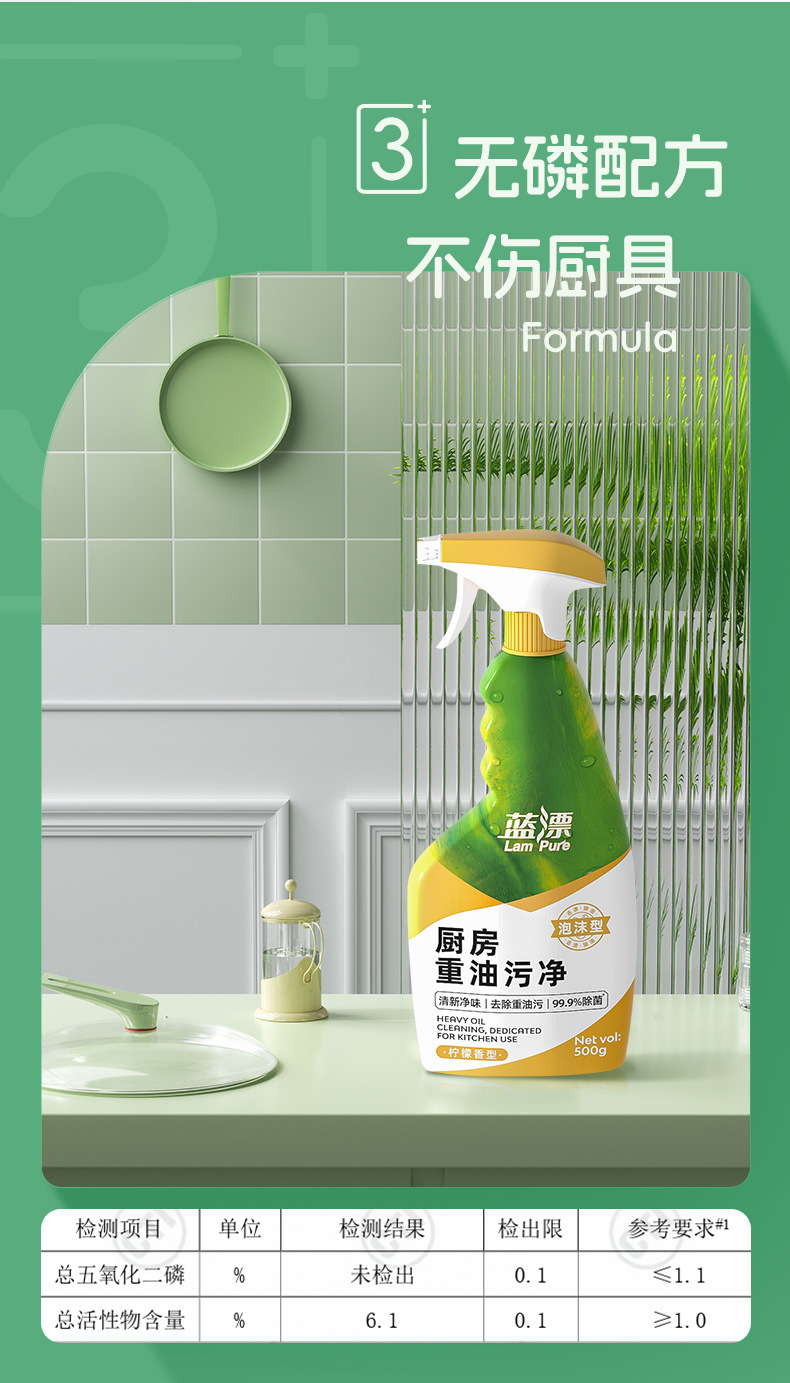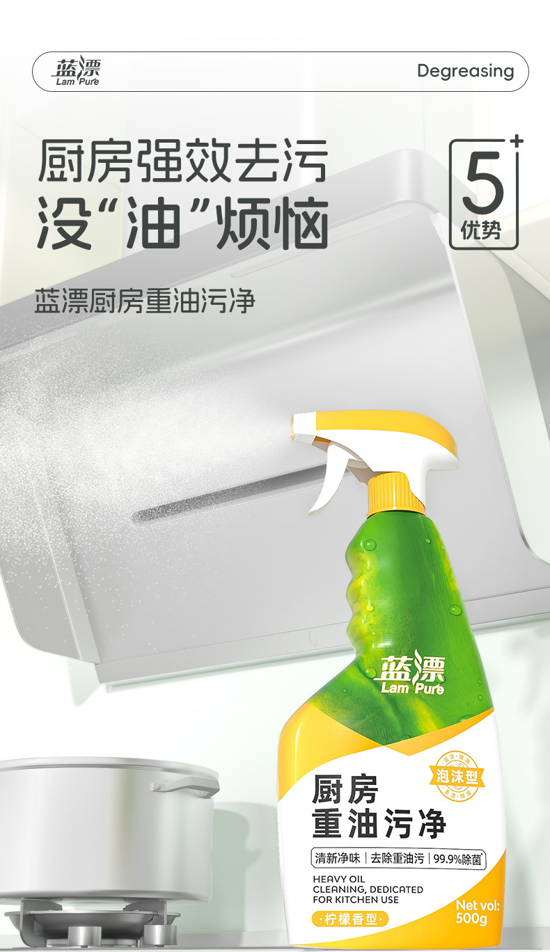 주방의 강한 기름때 제거 대용품 블루 플로트 레인지 후드 세정제 500ml 중성 pH 값