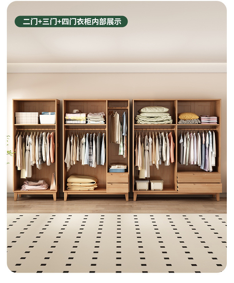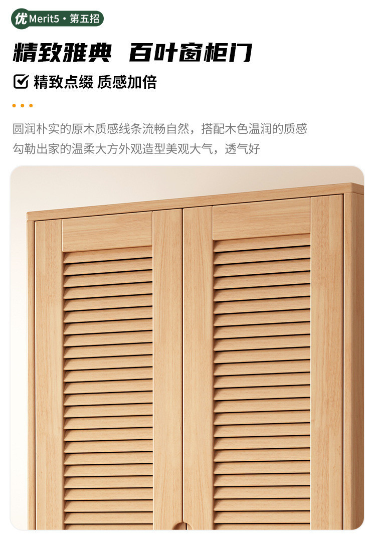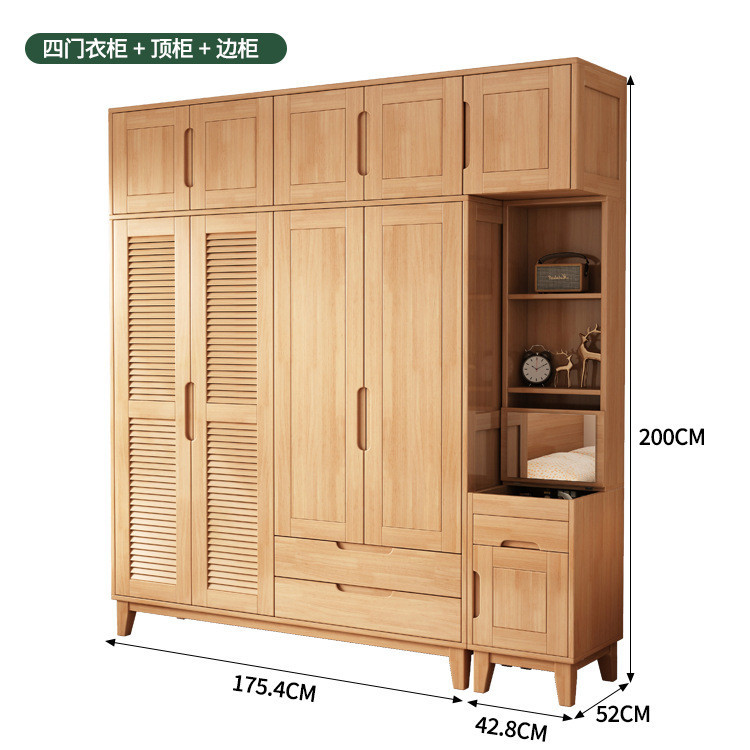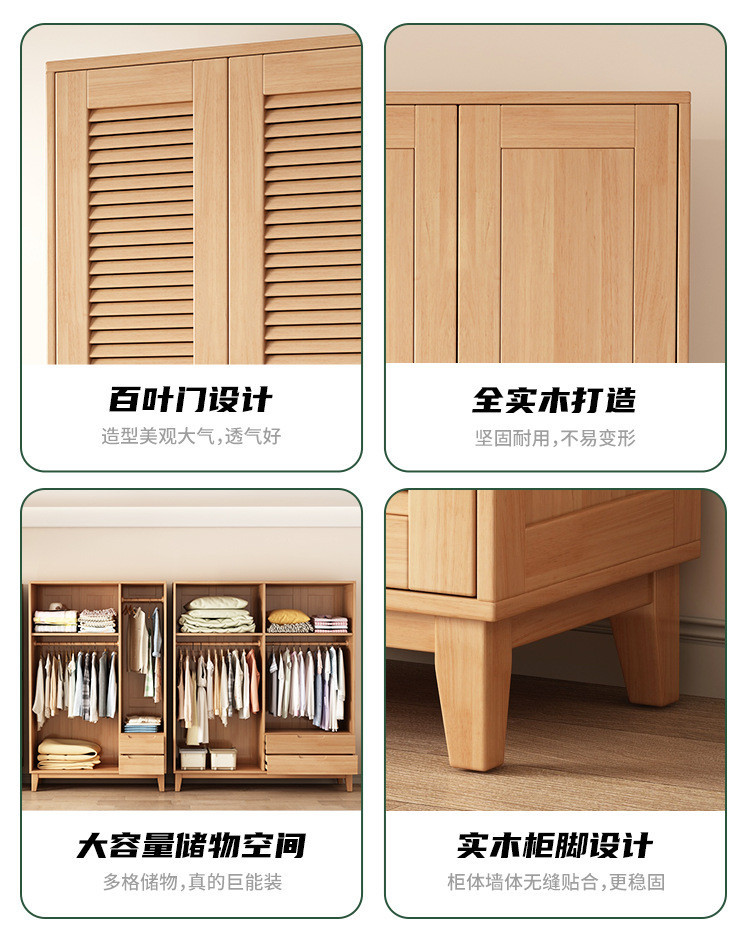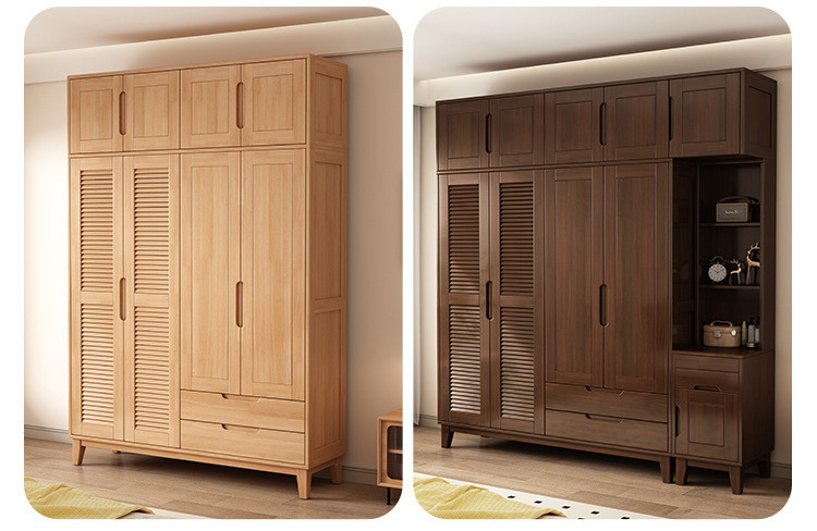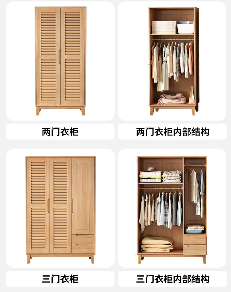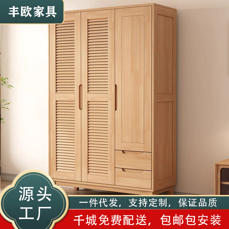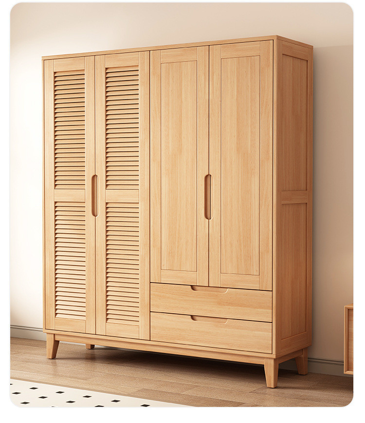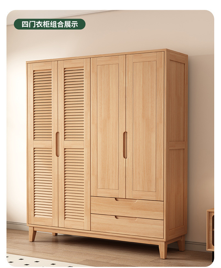 북유럽 전체 단단한 나무 일본식 통나무 스타일 루버 도어 옷장 2, 3 또는 4 도어 홈 침실 양문 옷장