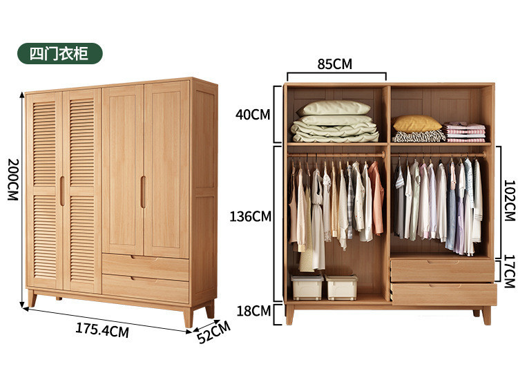 북유럽 전체 단단한 나무 일본식 통나무 스타일 루버 도어 옷장 2, 3 또는 4 도어 홈 침실 양문 옷장스토어 가기