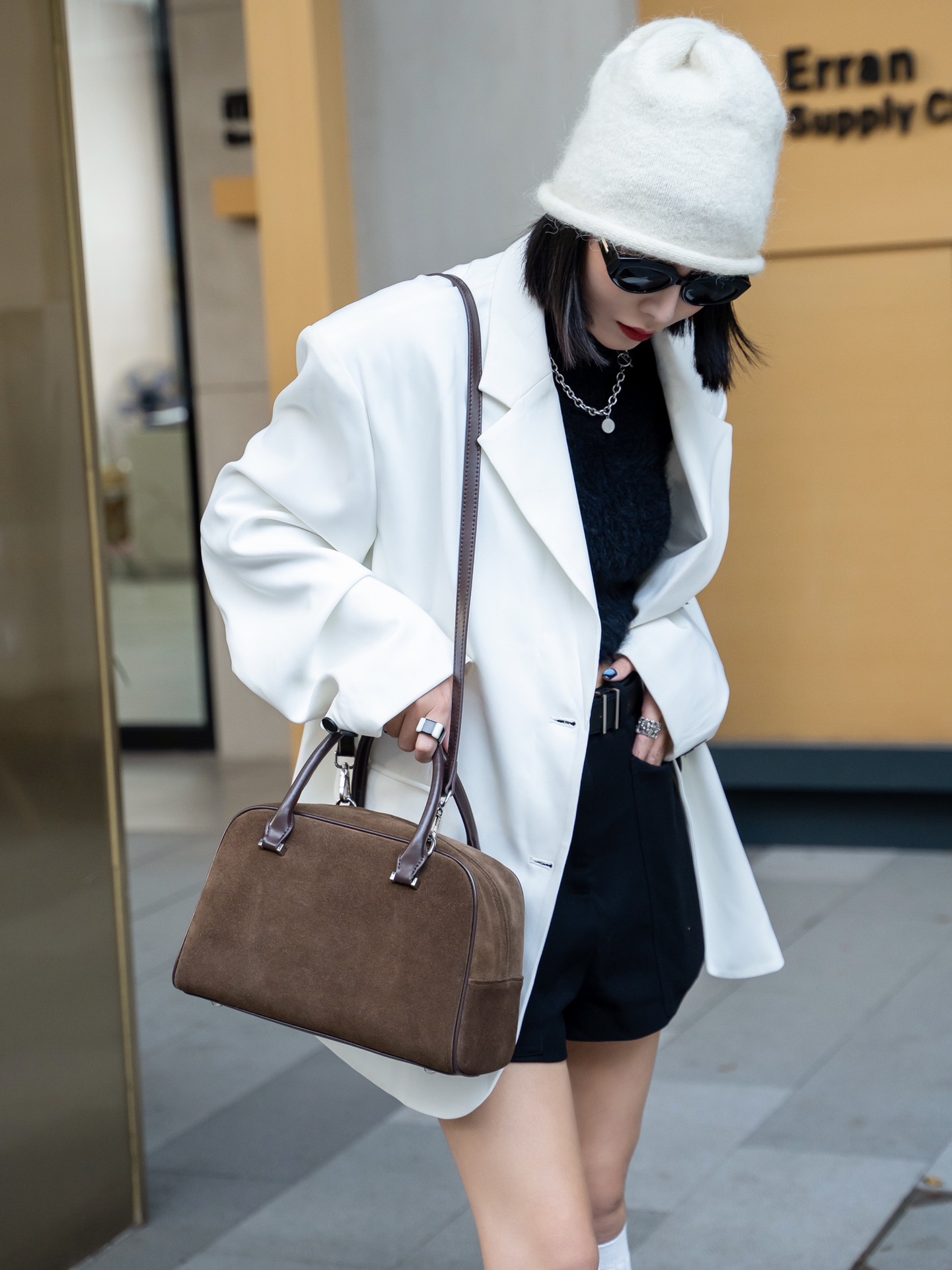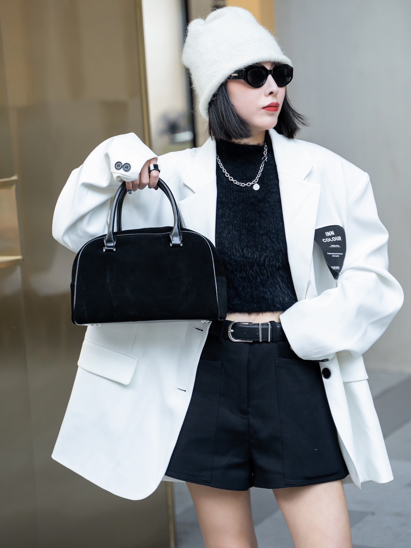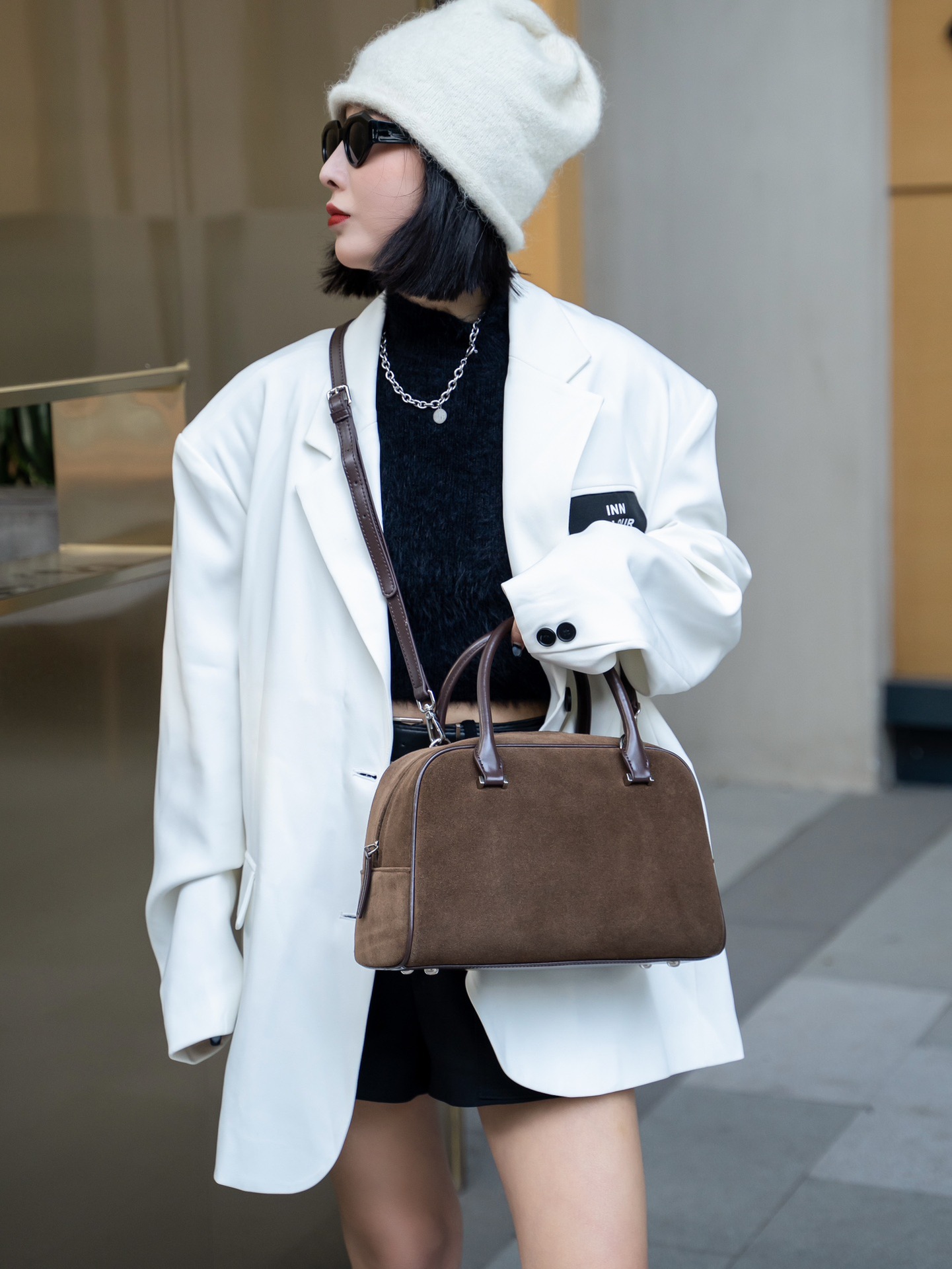 Nanfeng Chio2nd 삼바 라운지 베개 가방 여성 가을 복고풍 보스턴 가방 통근 휴대용 어깨 가방스토어 가기