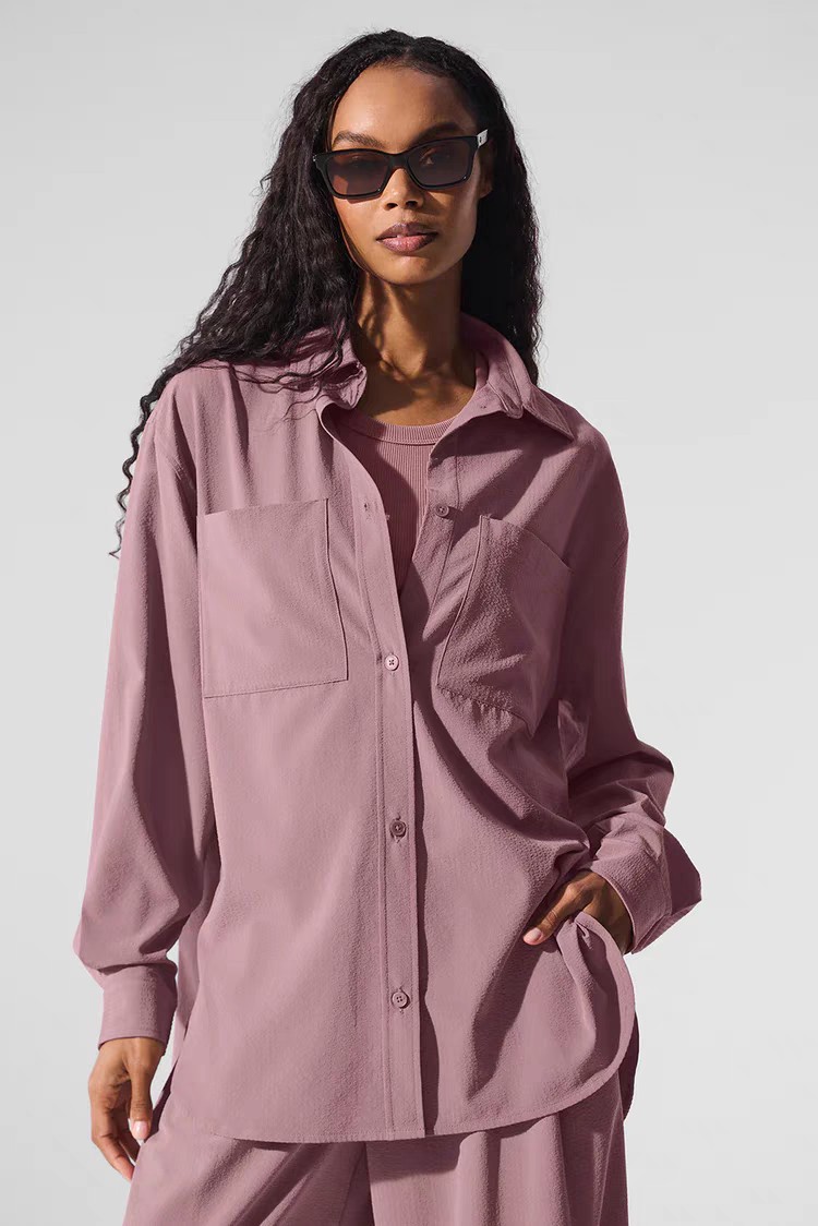 Alo 셔츠 완장 편지 긴팔 여성용 이른 봄 느슨한 모든 경기 캐주얼 스포츠 선스크린 솔리드 컬러 셔츠 재킷