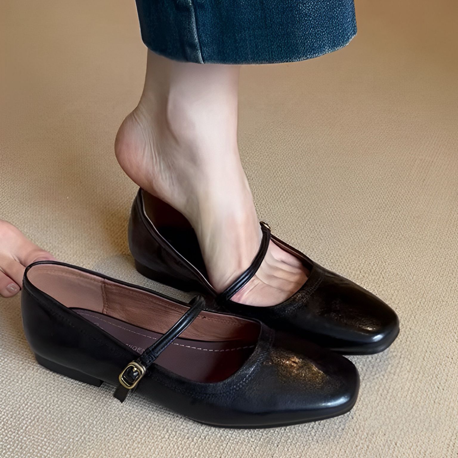 양가죽 버전 ~ 천연가죽 한국판 레트로 원버튼 버클 메리제인 슈즈 여성 플랫 슈즈 펌프스 작은 가죽신