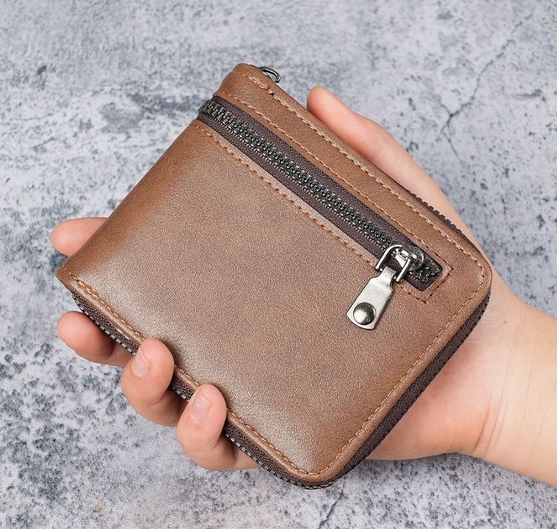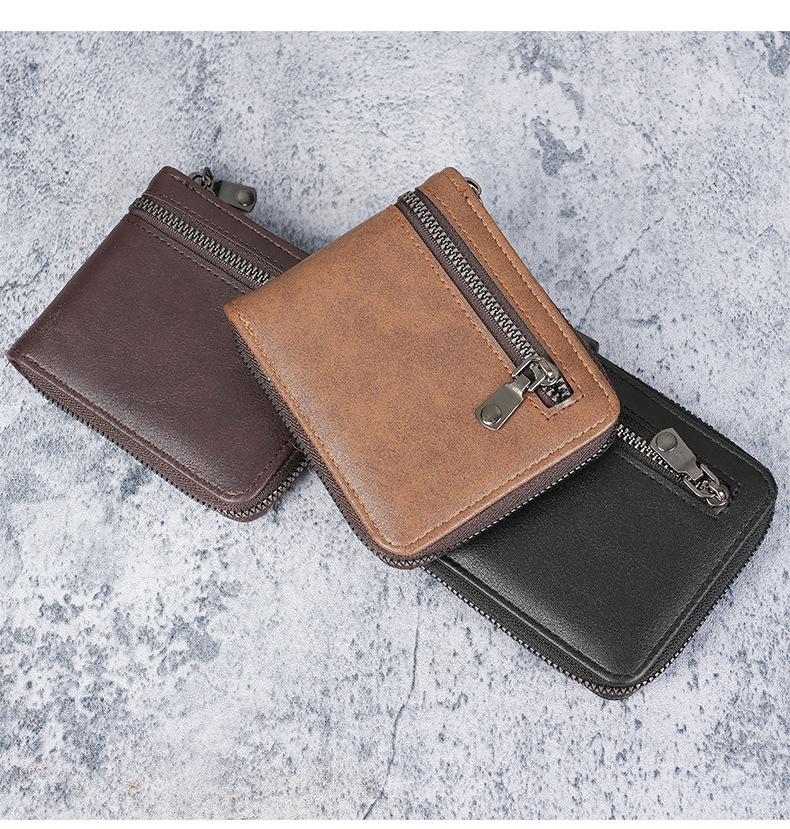인기있는 복고풍 패션 남성용 지갑 짧은 학생 멀티 카드 슬롯 대용량 지퍼 동전 지갑 카드 홀더 부드러운 지갑스토어 가기