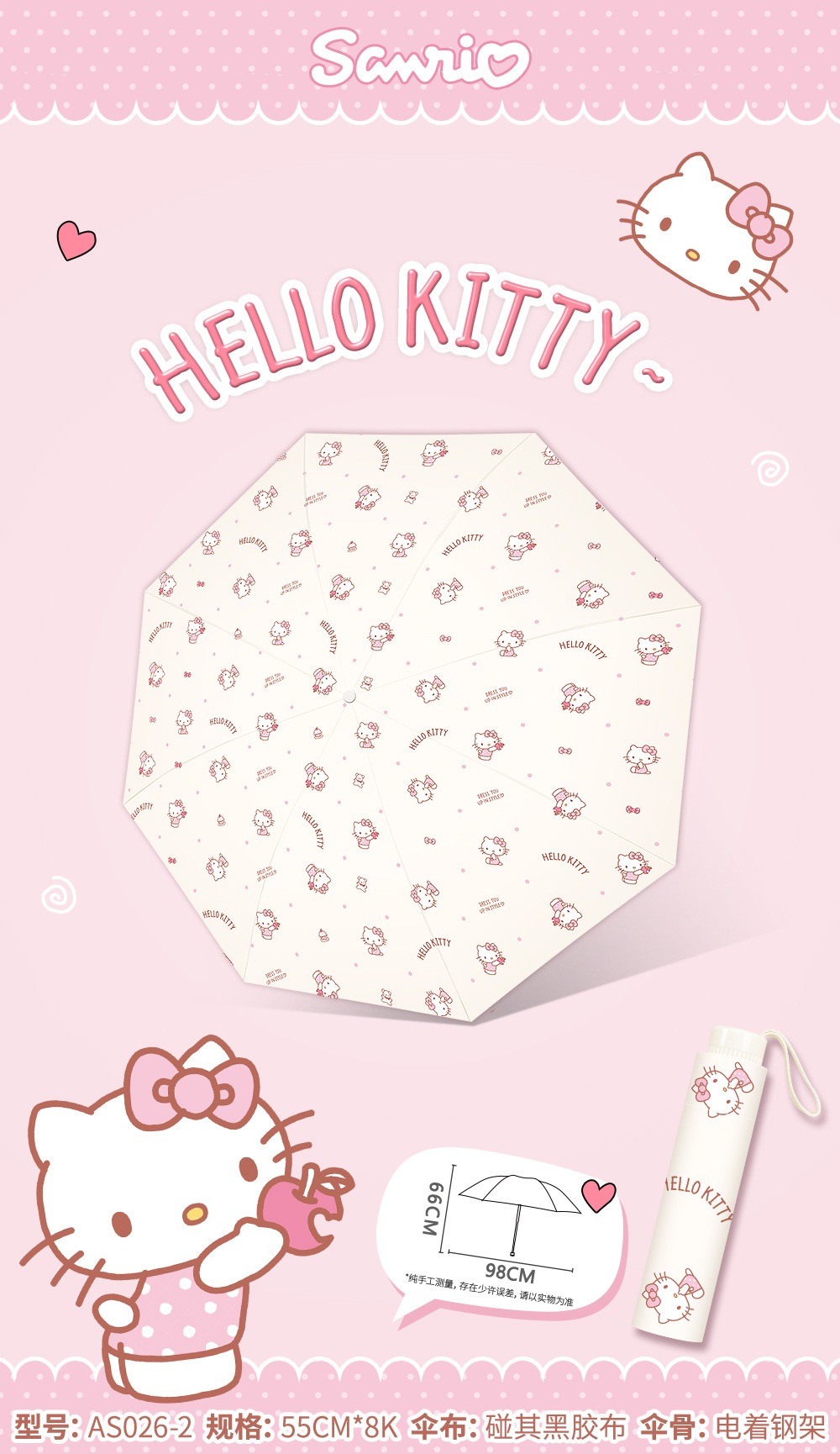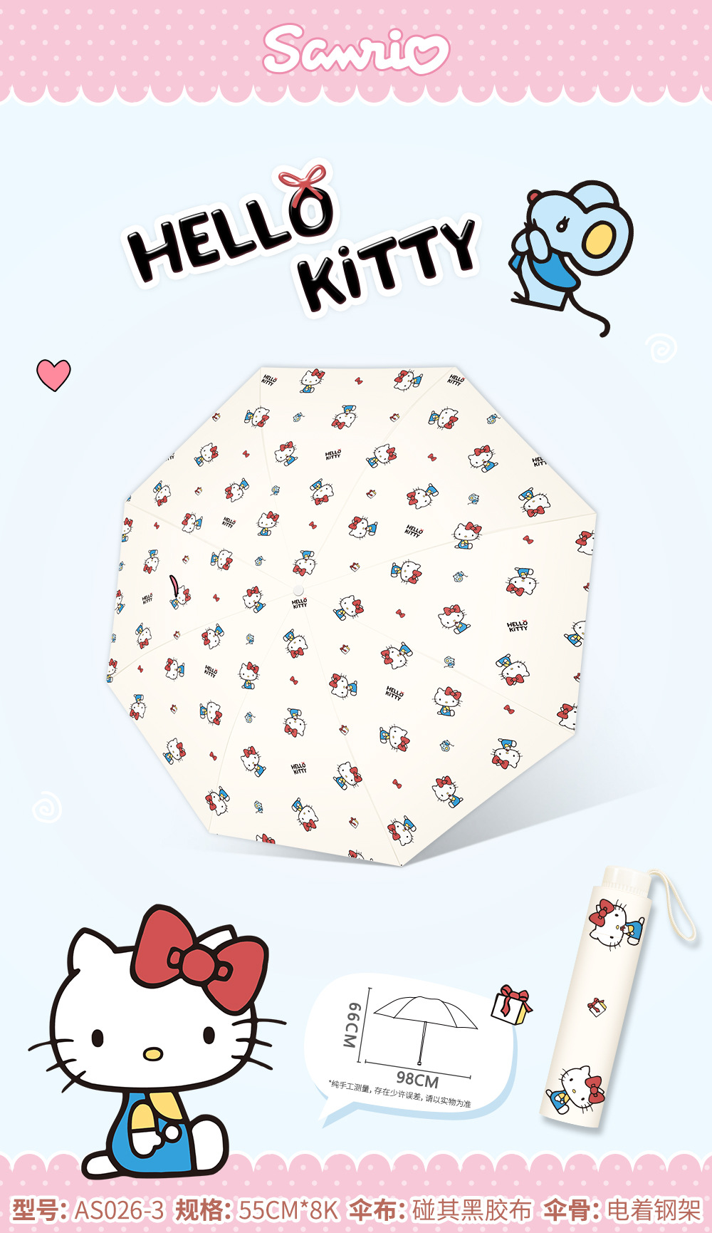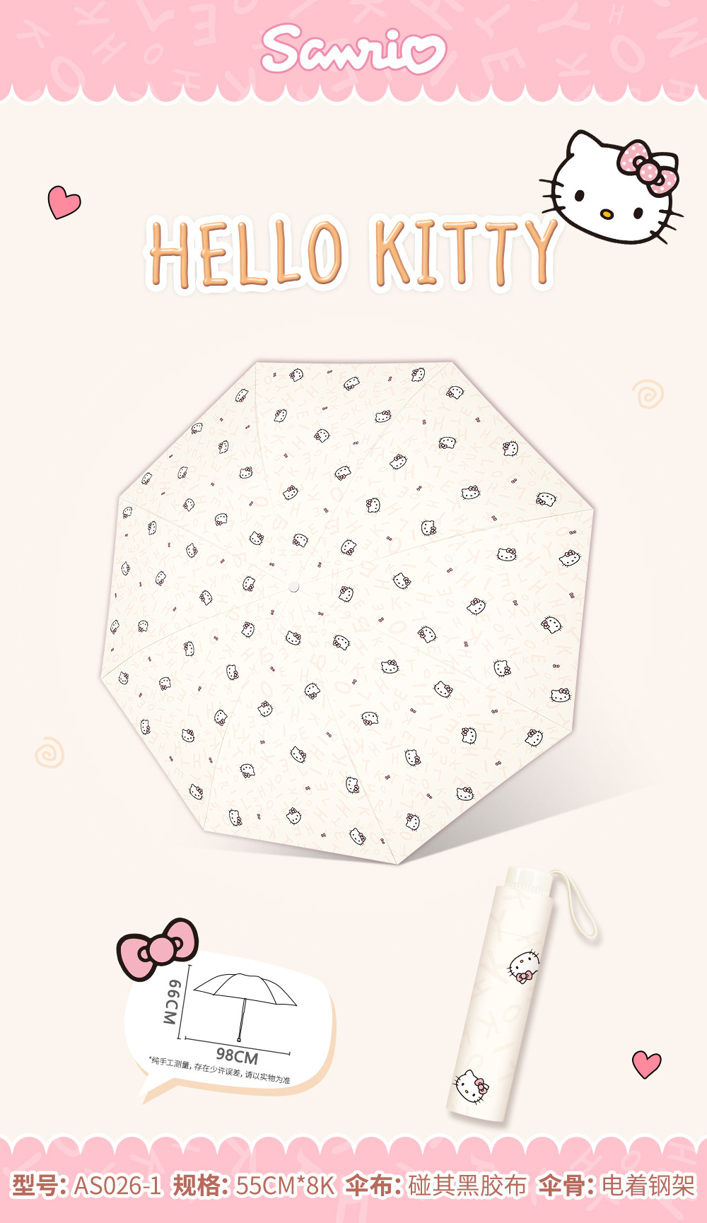 정품 산리오 우산 비닐 파라솔 비 또는 빛 태양 보호 UV 휴대용 만화 70% off 우산