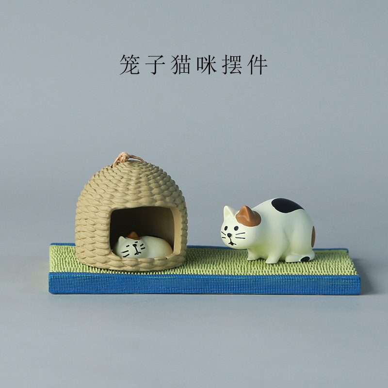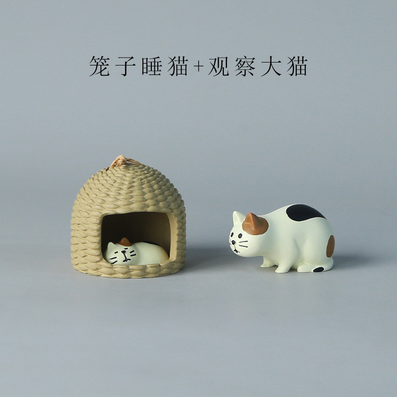 일본 고양이 zakka 케이지 잠자는 고양이 관찰 큰 고양이 다다미 쿠션 데스크탑 치유 귀여운 공예 장식품