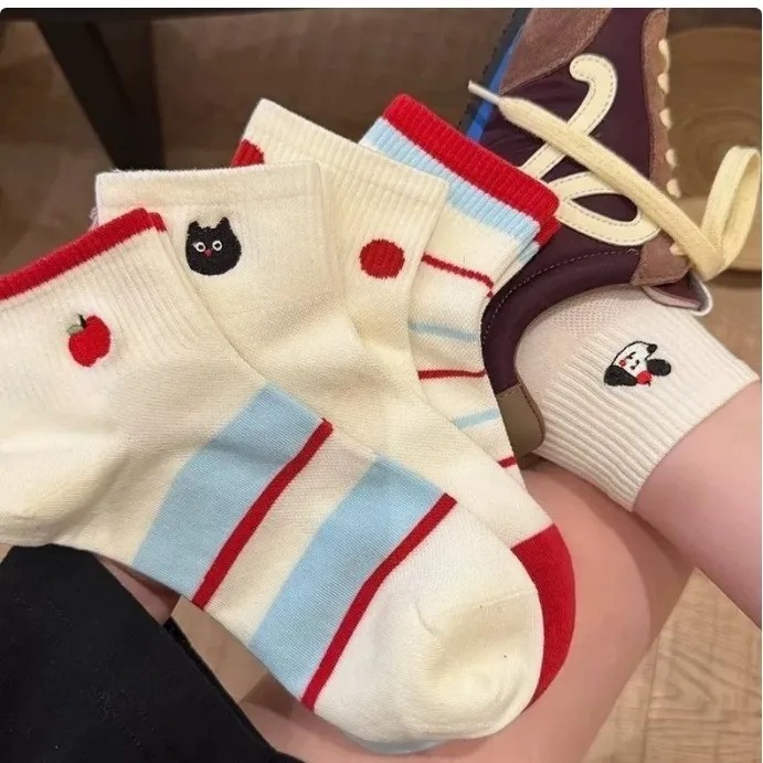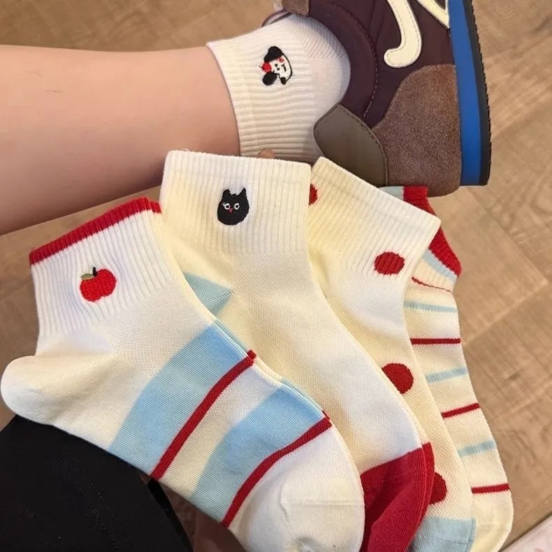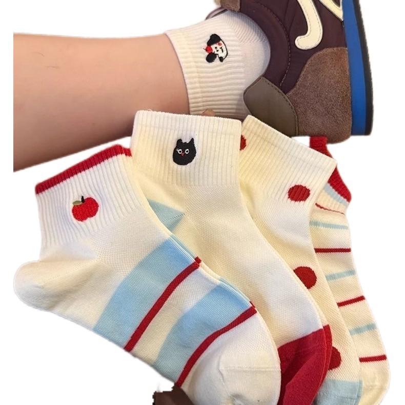 얇은 귀여운 양말 여성 한국 스타일 스타일 소녀 더미 양말 봄과 여름 메쉬 만화 자수 일본 여성 양말스토어 가기