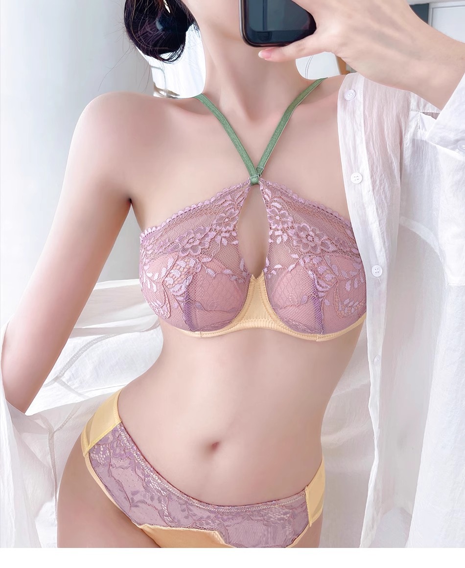 프랑스 스타일 목에 매달린 섹시한 속옷 여성의 큰 가슴 작은 가슴 모임 얇은 붕괴 유방 안티 처짐 어퍼 브라 세트