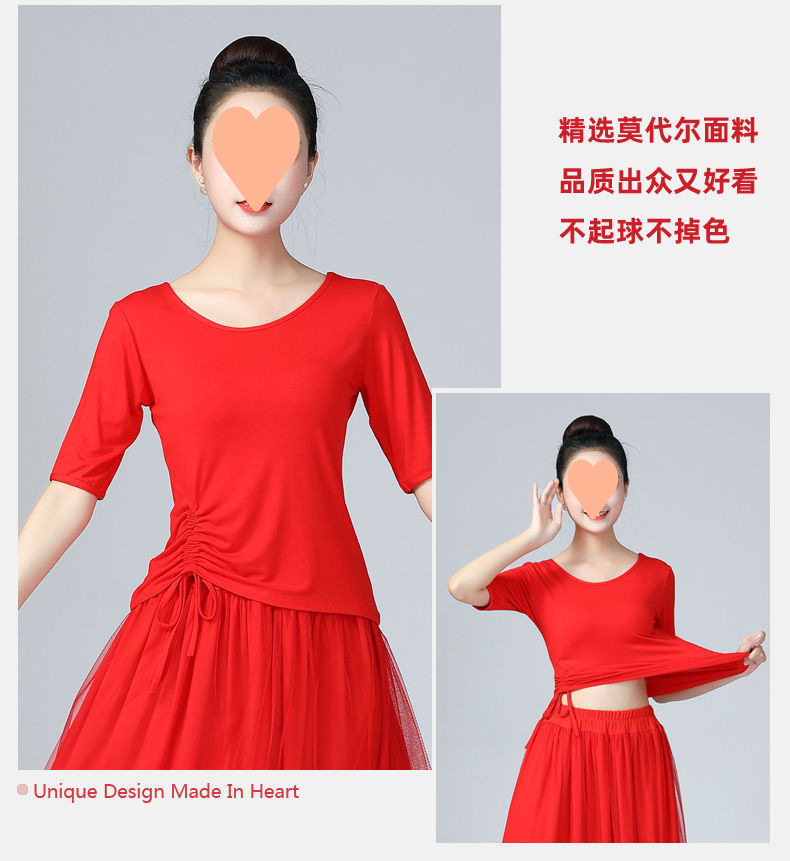 라틴 댄스 의상 탑 여성 연습복 여름 성인 모달 댄스 의상 슬림핏과 슬리밍을 위한 중간 소매 댄스 의상