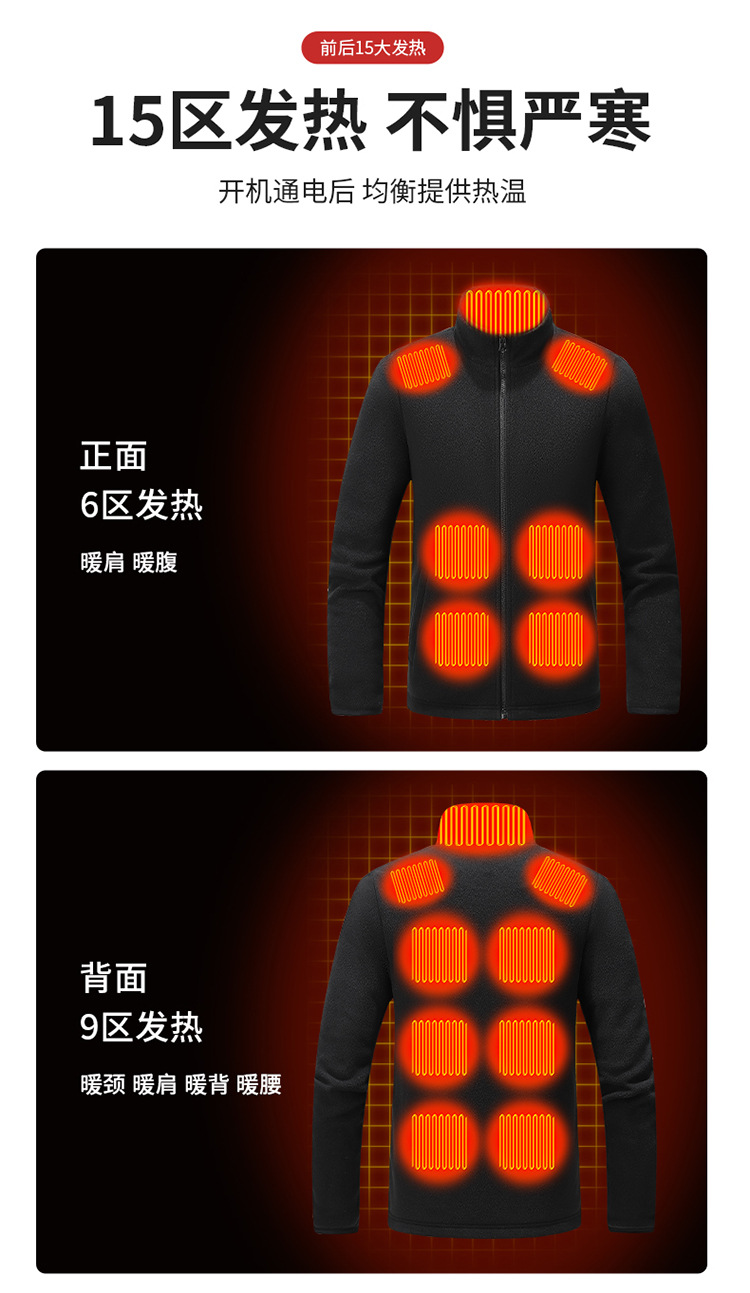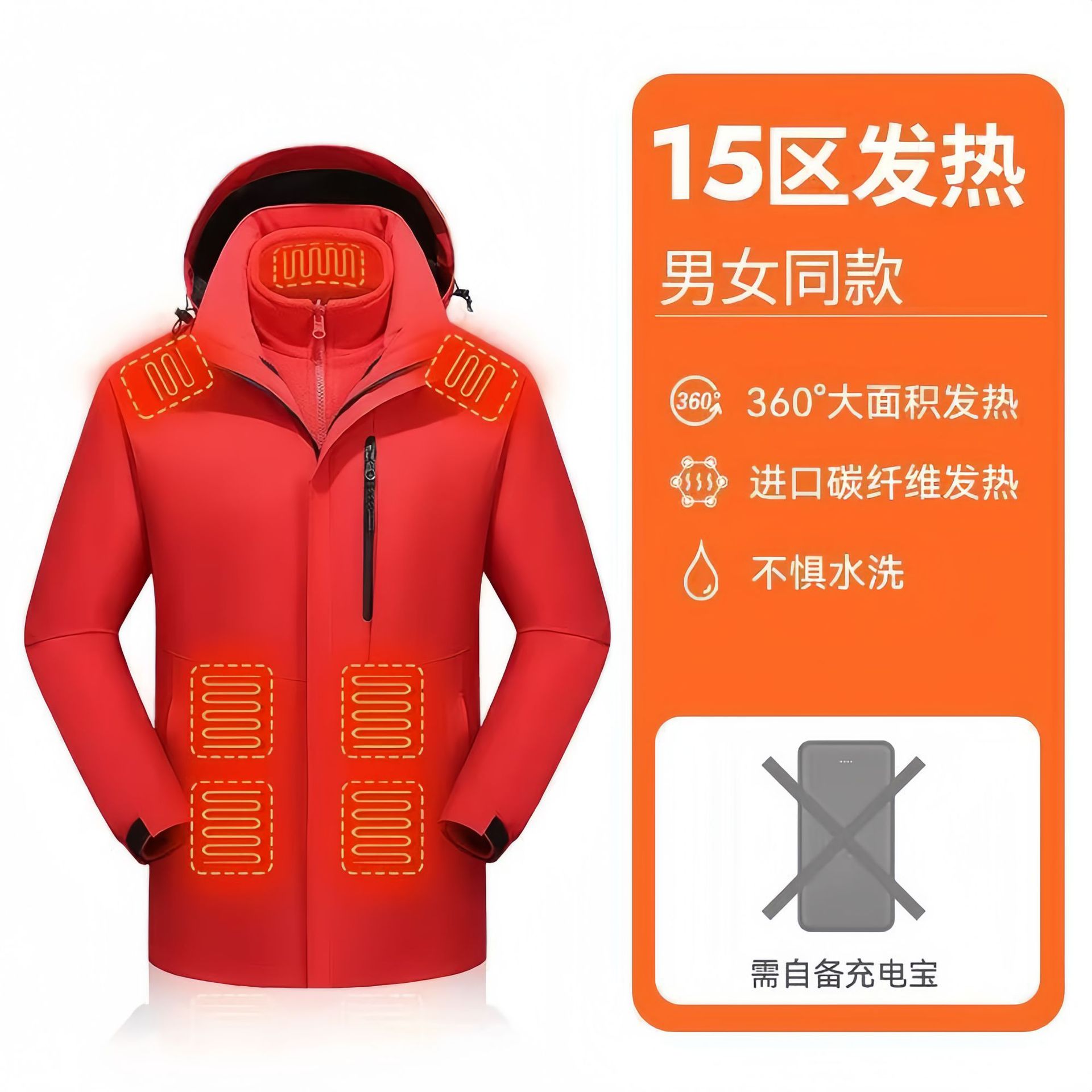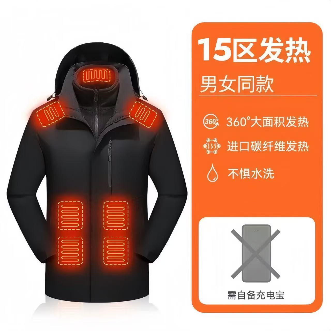 국경 간 인기 겨울 남성 및 여성 스마트 15존 발열 재킷 탈착식 야외 따뜻한 등산 재킷