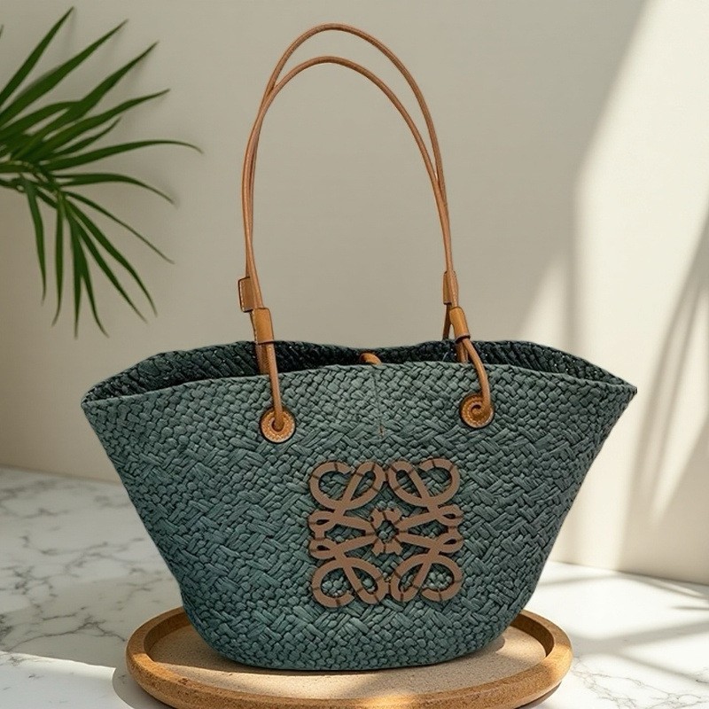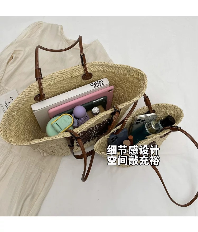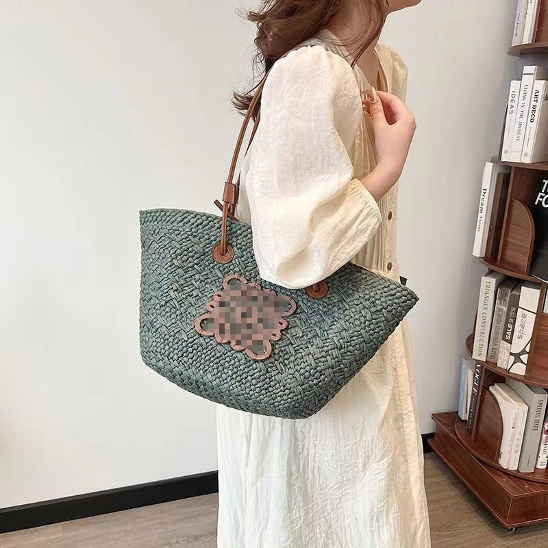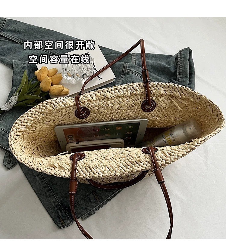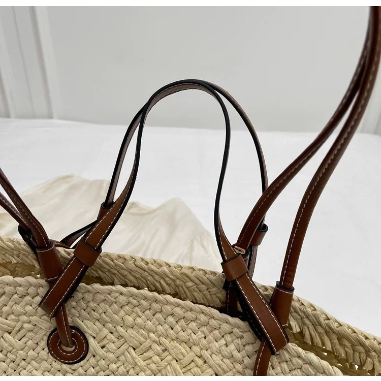 Luojia 밀짚 가방 여름 새로운 대용량 수제 짠 가방 토트 백 핸드백 홀리데이 비치 백