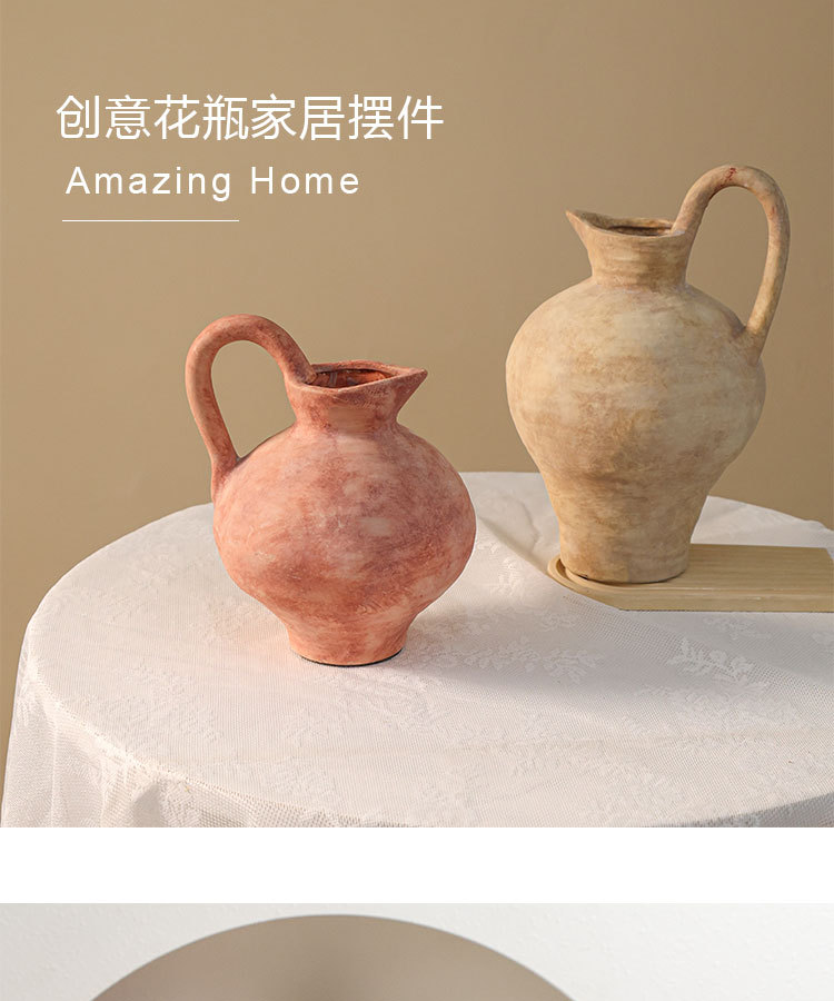 중세 수제 세라믹 꽃병, 와비사비 스타일 도자기, 거실, B&B 꽃꽂이, 조화, 식탁 장식