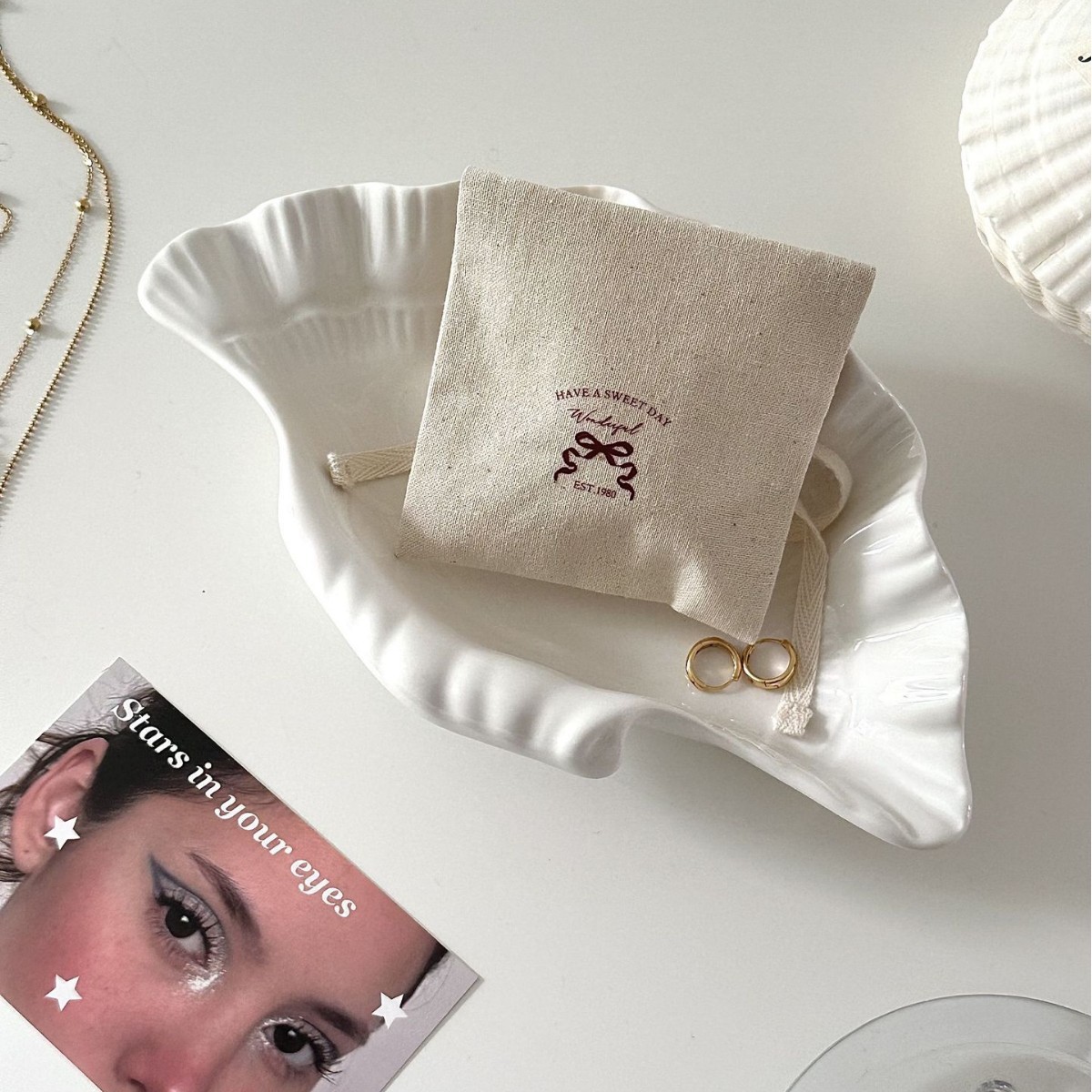 작은 활 끈면 및 린넨 보관 가방 선물 크리스탈 보석 선물 포장 가방 사진 소품