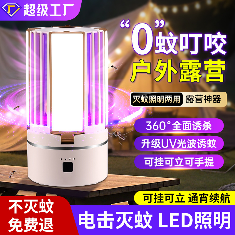 야외 캠핑 램프, 다기능 충전식 모기 킬러 램프, 모기 구충제, 접이식 모기 킬러 조명, 이중 목적 텐트 살충제 램프스토어 가기