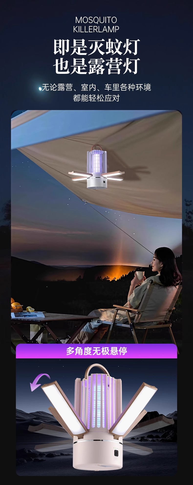 야외 캠핑 램프, 다기능 충전식 모기 킬러 램프, 모기 구충제, 접이식 모기 킬러 조명, 이중 목적 텐트 살충제 램프