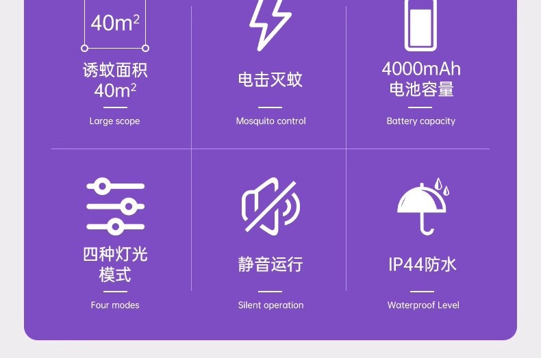 • 충전식 캠핑 모기 킬러 램프 4000mAh