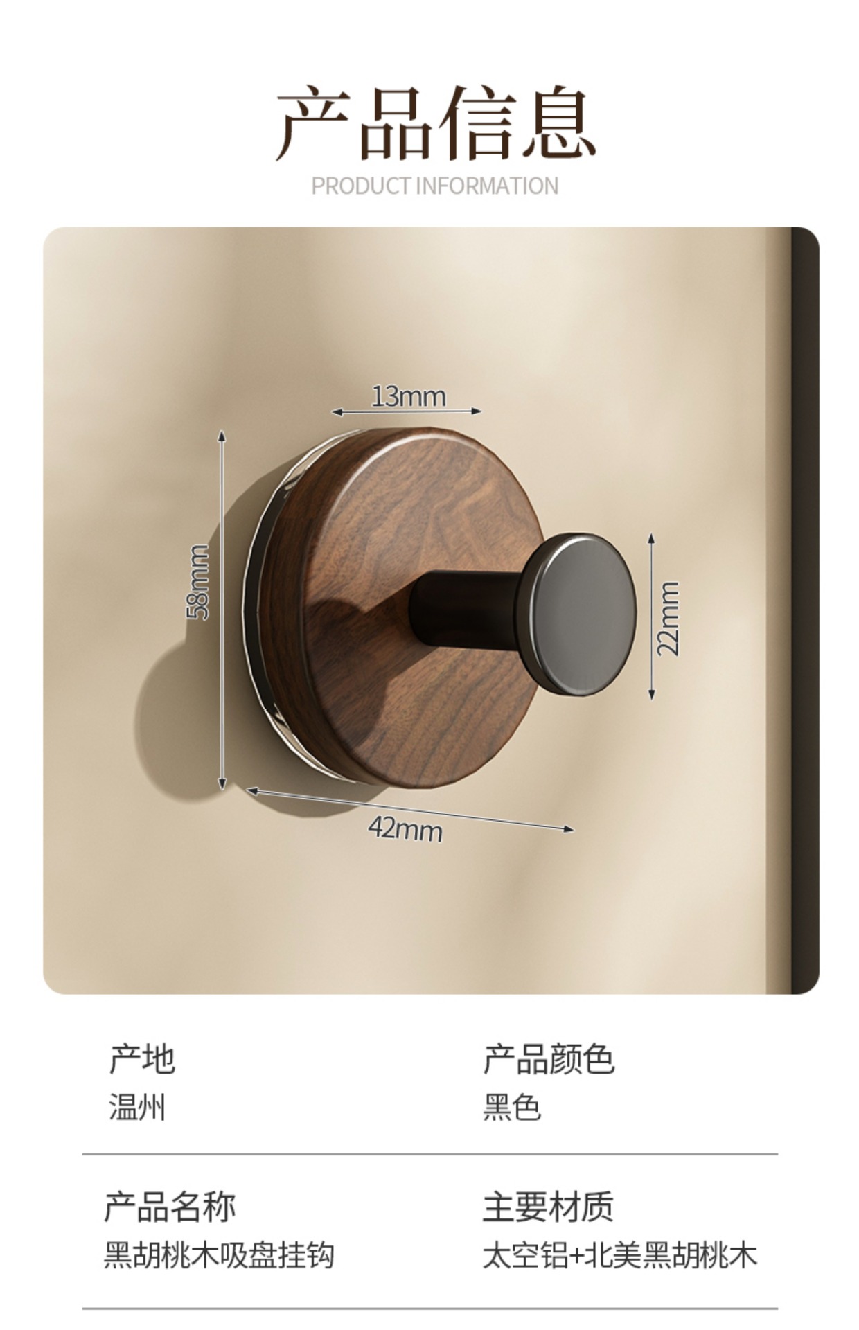 • 블랙 1팩 [흡착컵형] 블랙월넛 원목
