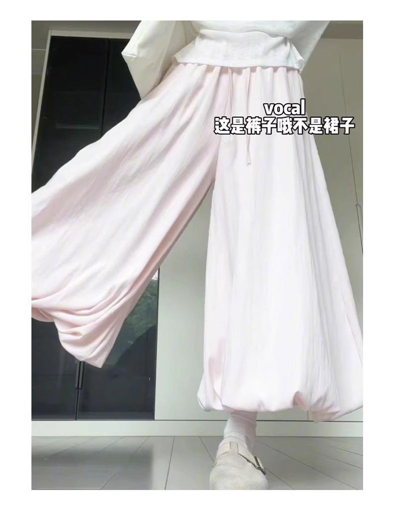 핑크 꽃 버드 원피스 바지 여성 여름 2025 새로운 높은 허리 슬리밍 블루머스 느슨한 캐주얼 와이드 다리 바지