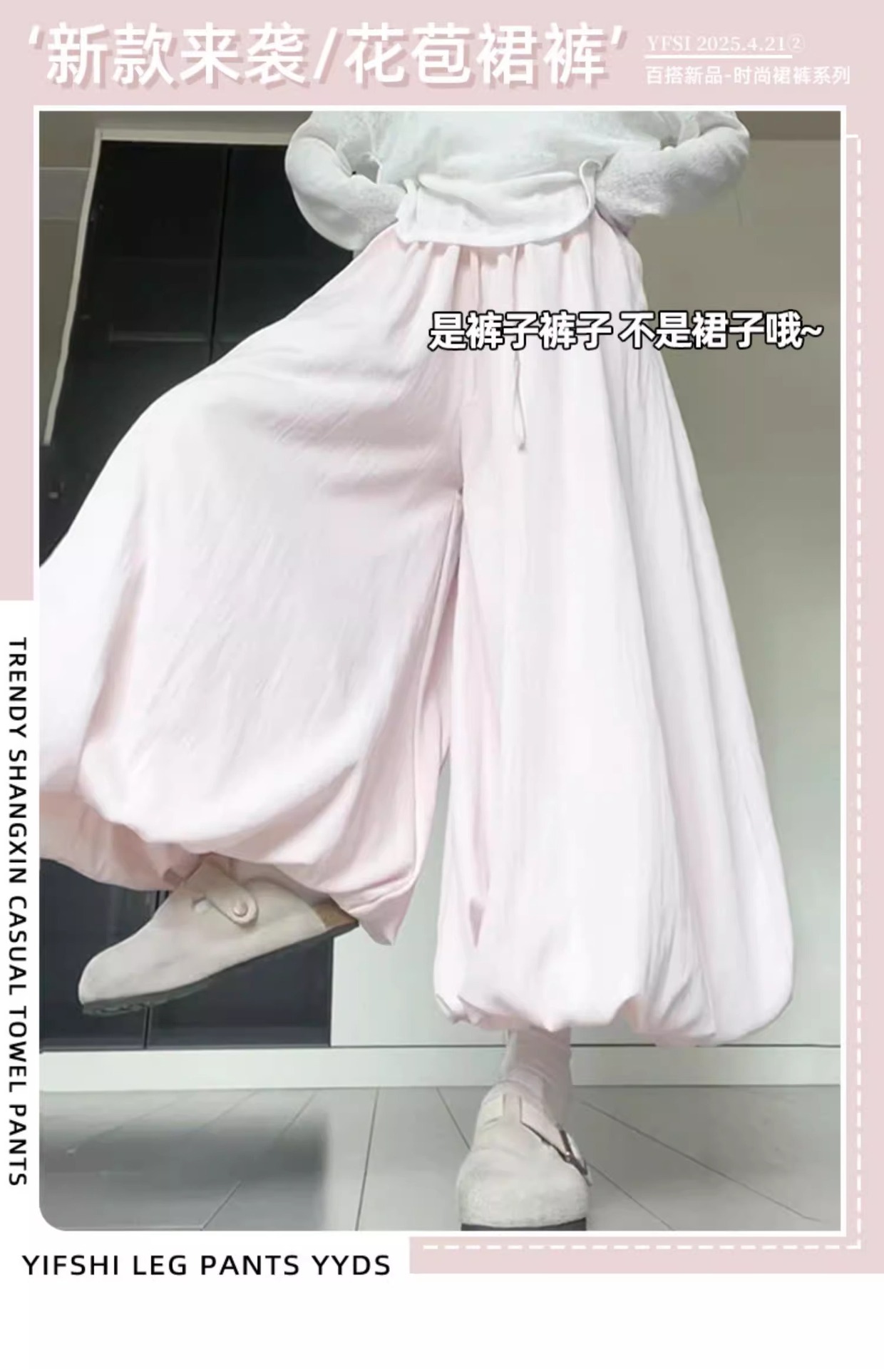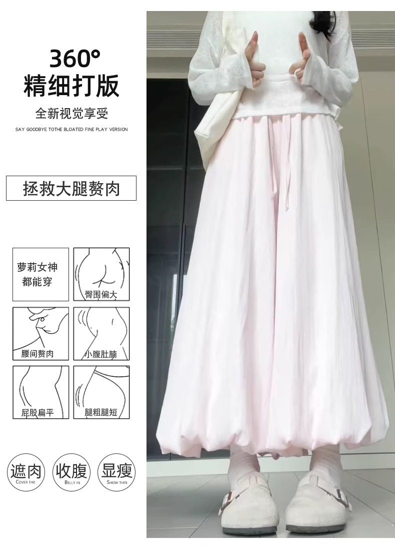 핑크 꽃 버드 원피스 바지 여성 여름 2025 새로운 높은 허리 슬리밍 블루머스 느슨한 캐주얼 와이드 다리 바지스토어 가기