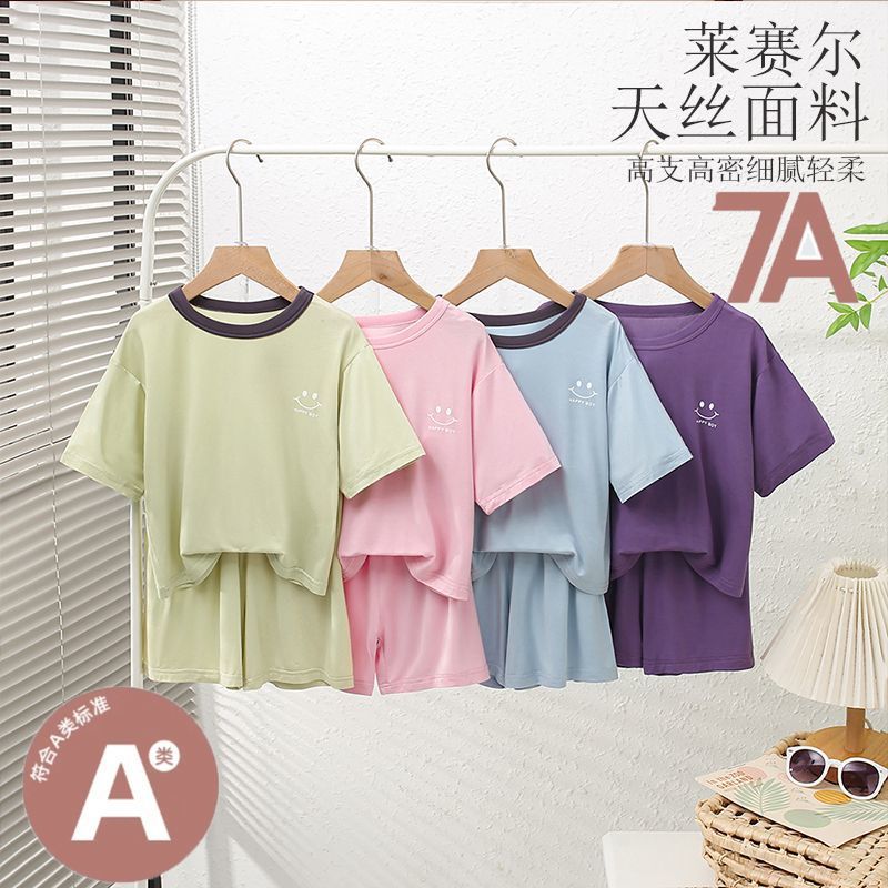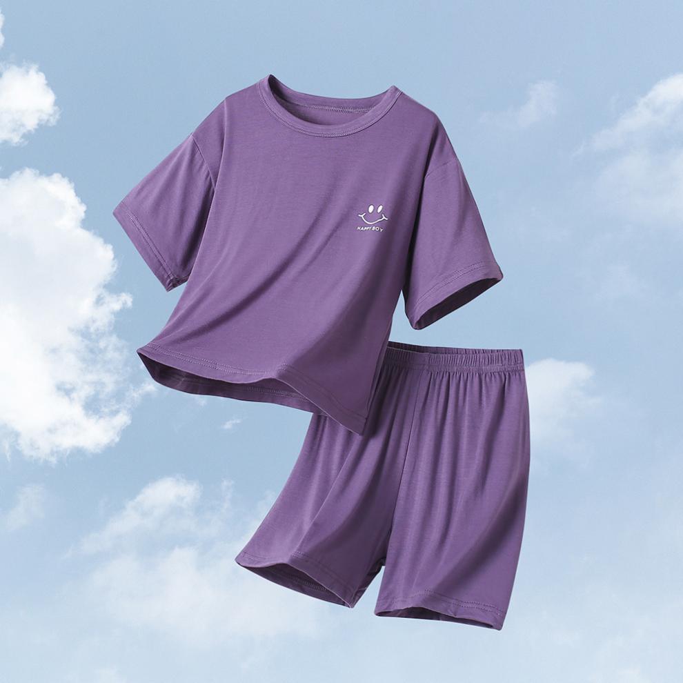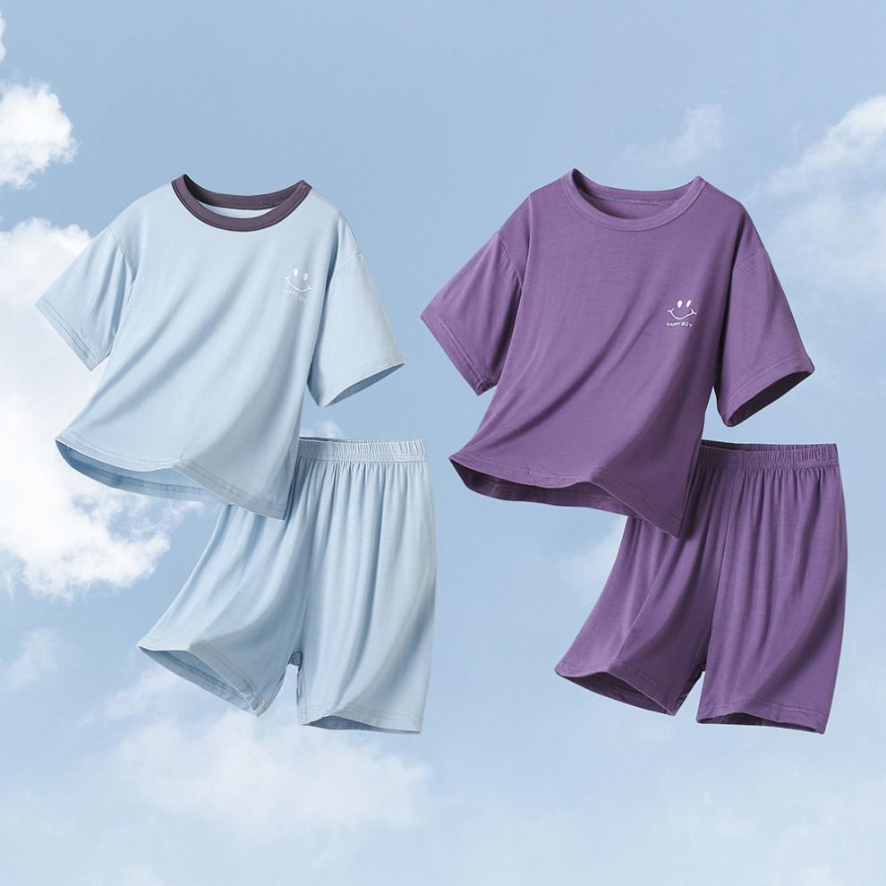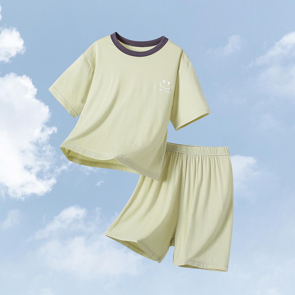 모달 아동 여름 정장 소년 반팔 반바지 소년 잠옷 투피스 얇은 청소년 에어컨 의류스토어 가기